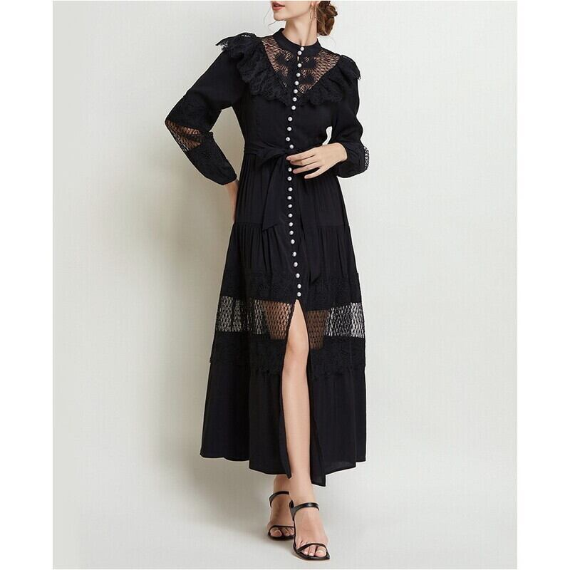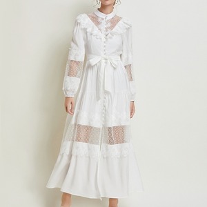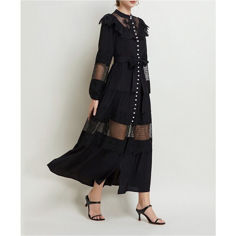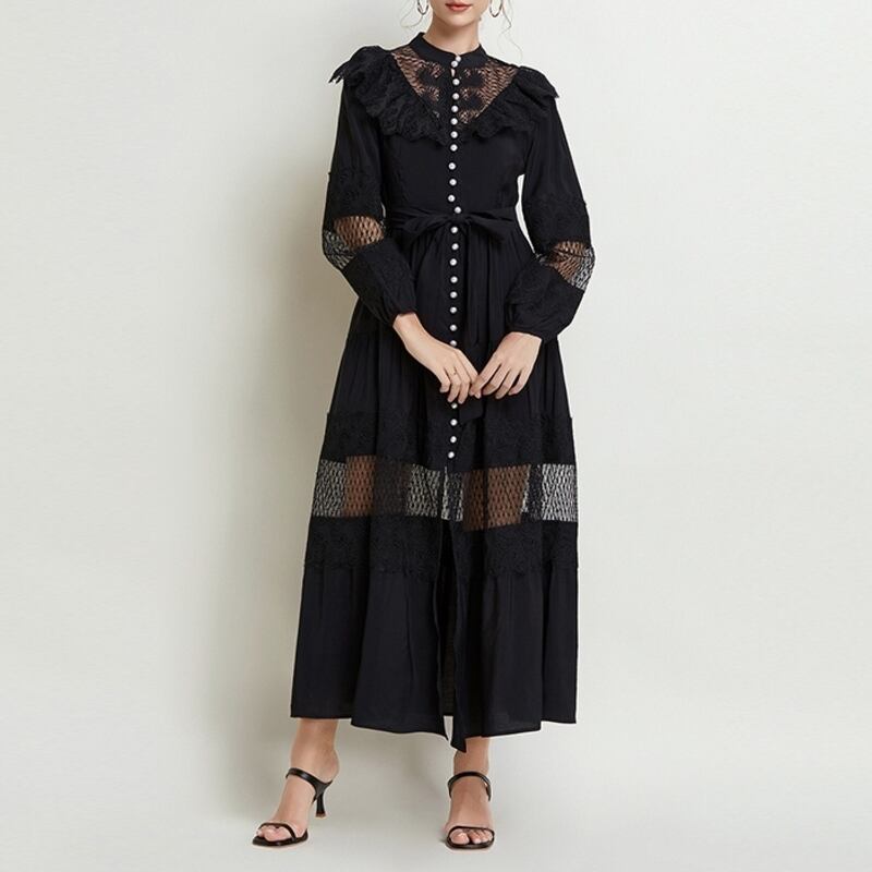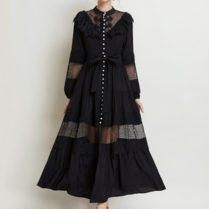 メッシュ切り替えフリルロングドレス2色展開 D0006