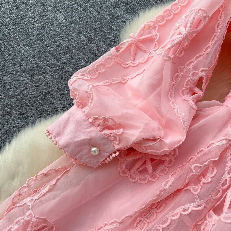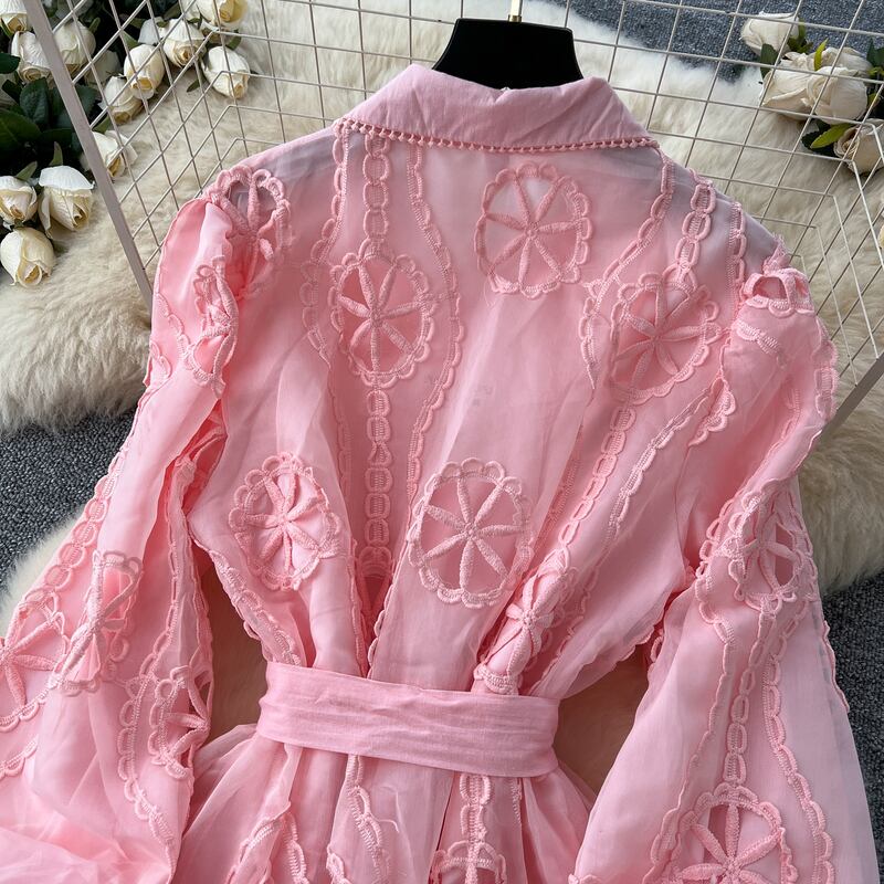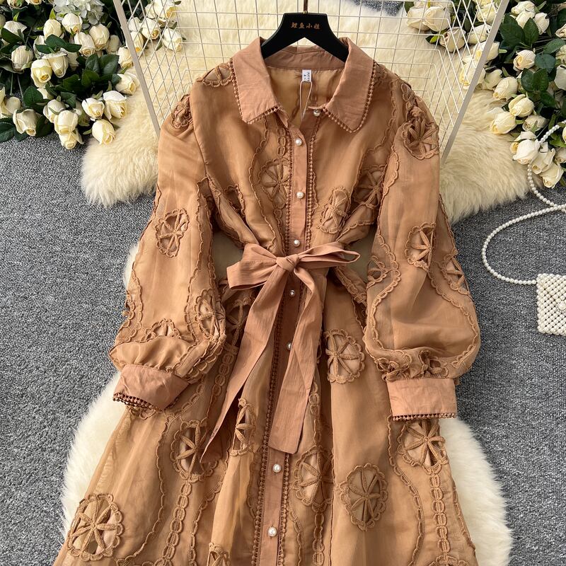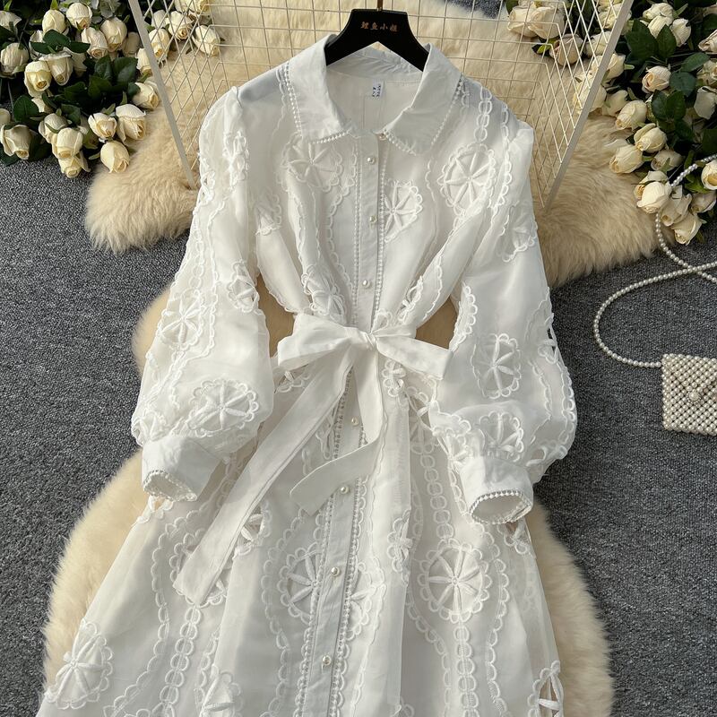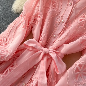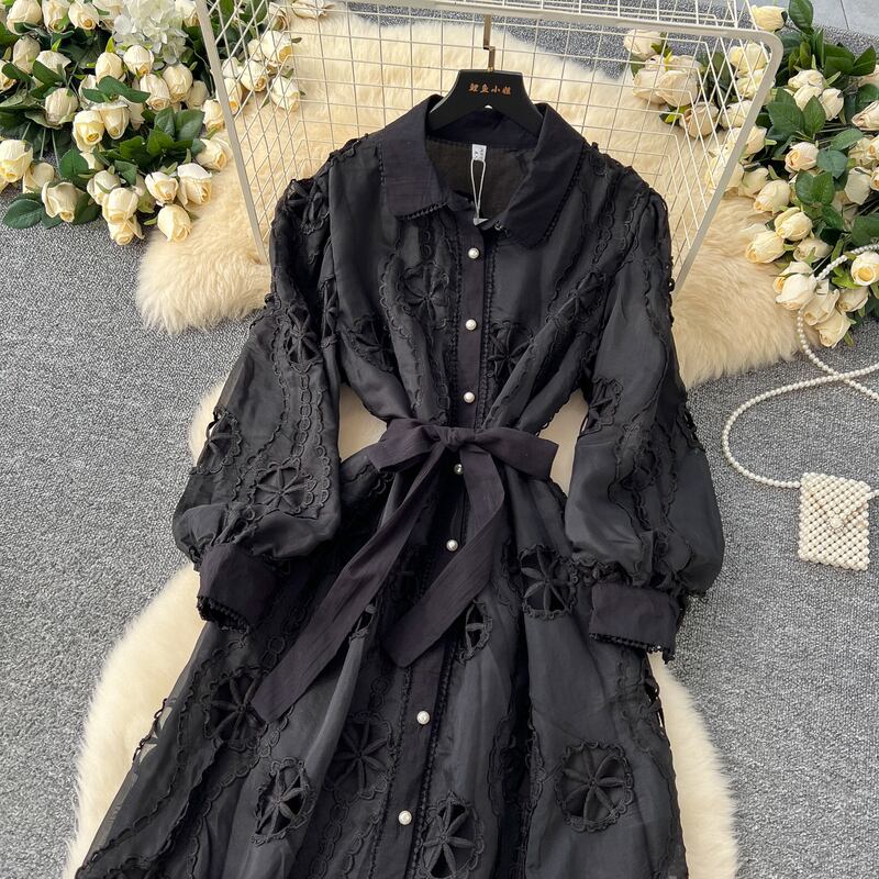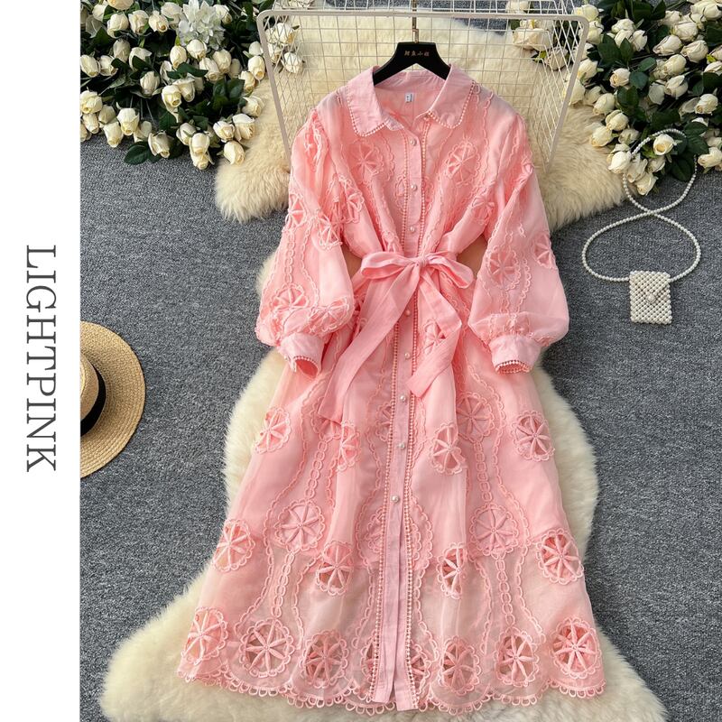 パンチングレースシャツロングドレス6色展開 D0007