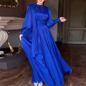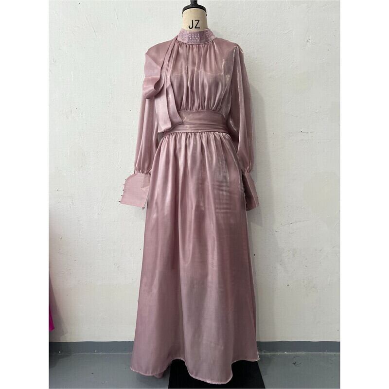 ロングカフスサテンAラインドレス4色展開 D0011