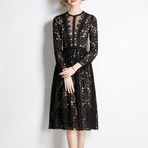 総レースミディアム丈フレアドレス D0016