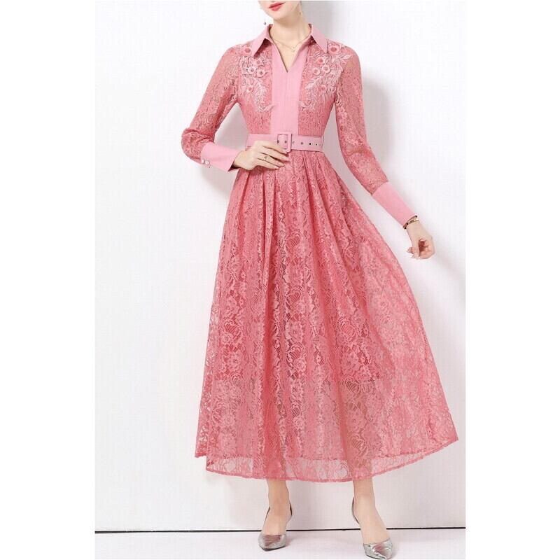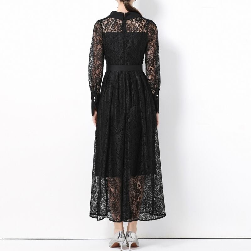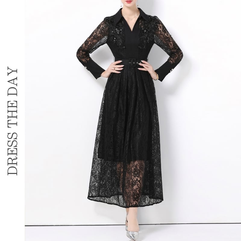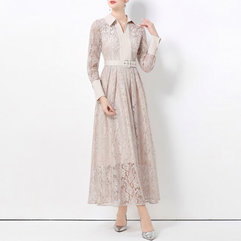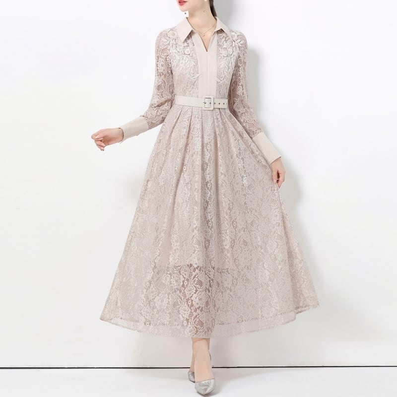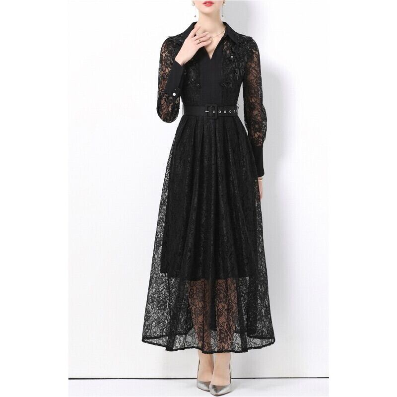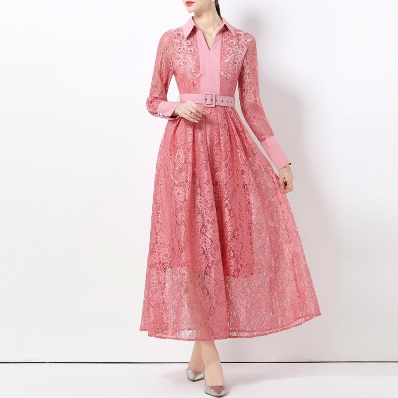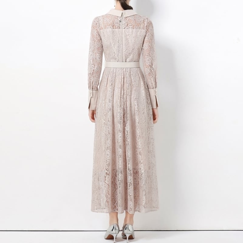 繊細な総レース仕立てが魅力的な襟付きのロング丈ドレスです。上品なフレア感が魅力的で、シックな配色が大人かわいい印象を与えます。普段使いから特別な日のコーディネートまで幅広く活躍しますので、どんな場面でもあなたを引き立ててくれること間違いなしです!
