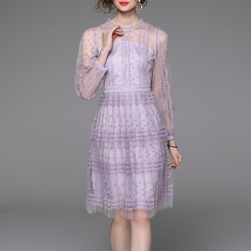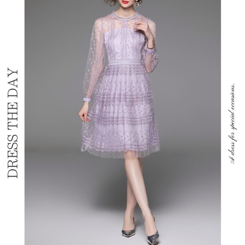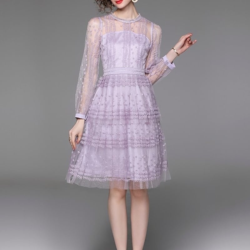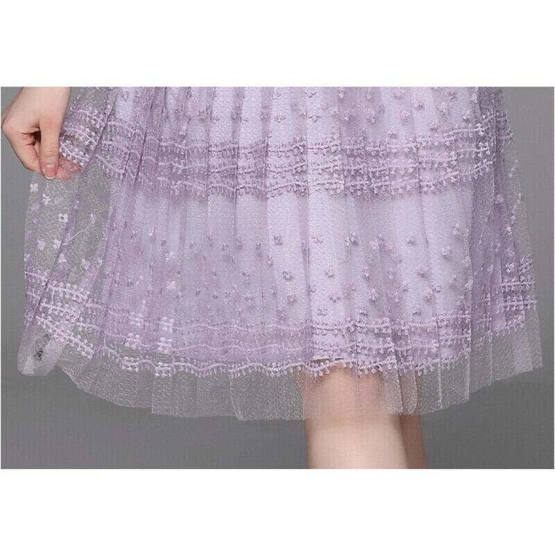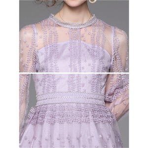 チュール刺繍シアースリーブドレス D0028