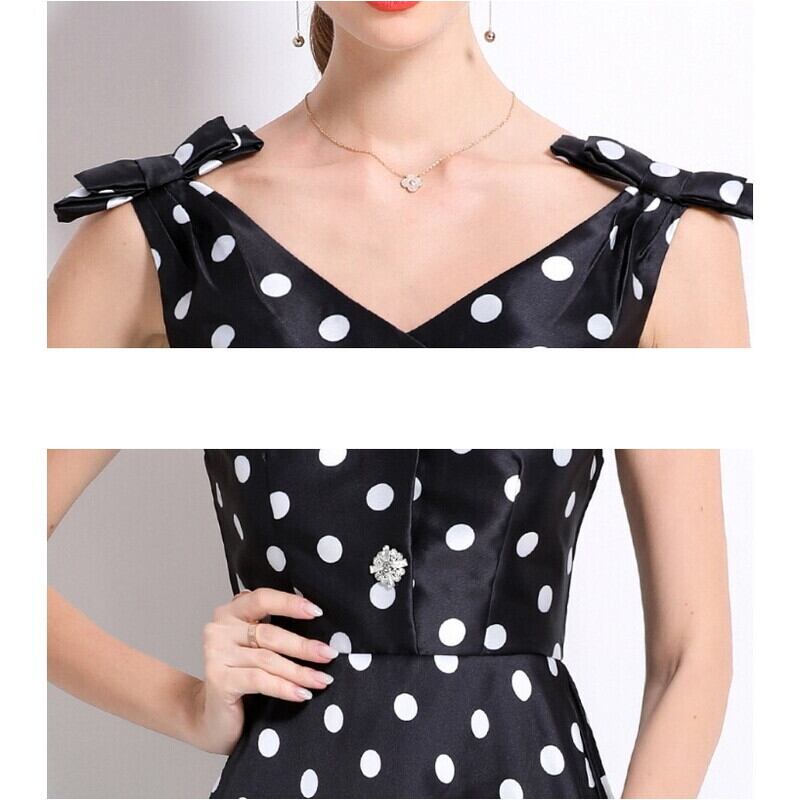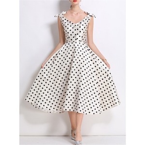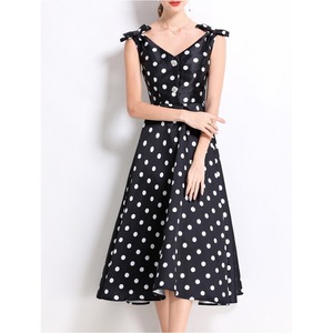 ポルカドットリボンVネックドレス2色展開 D0038