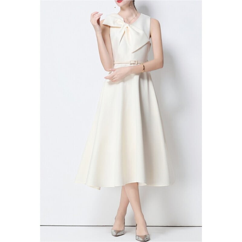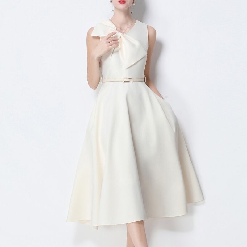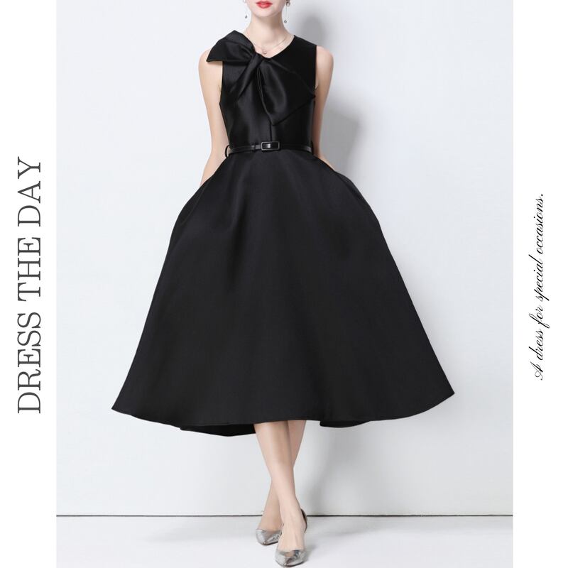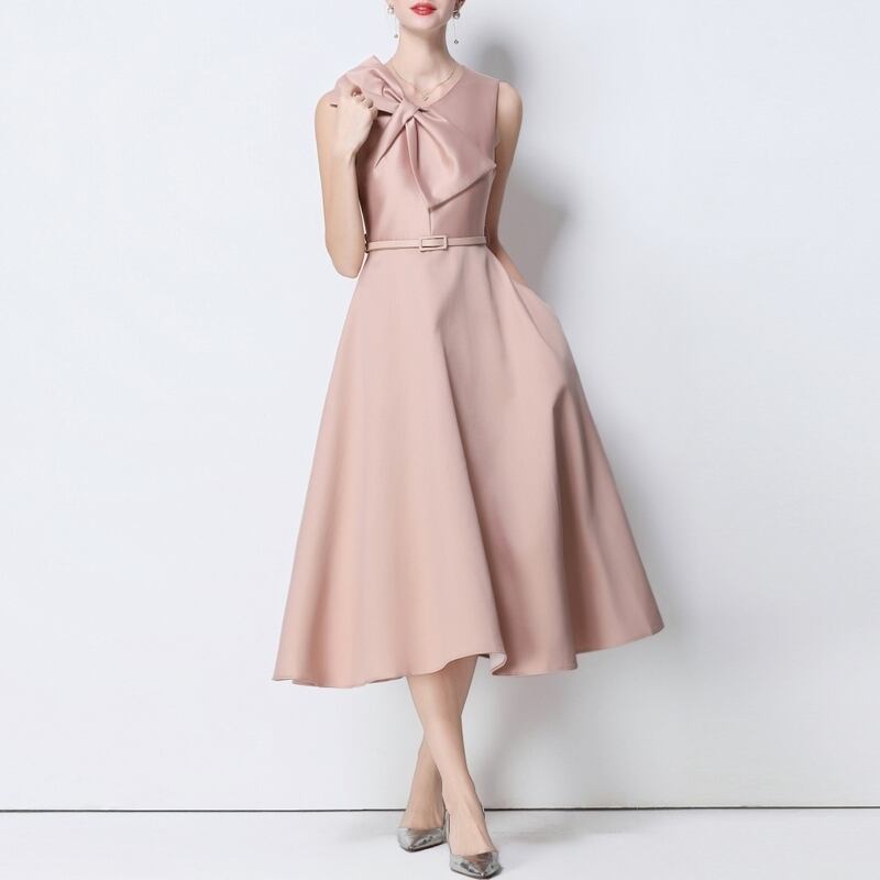 ビッグリボンノースリーブドレス4色展開 D0043