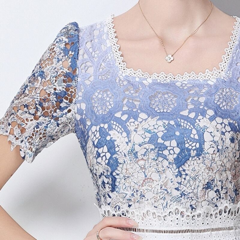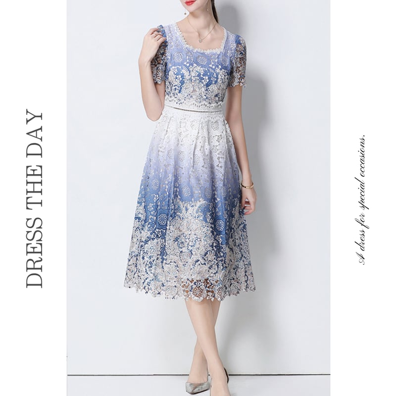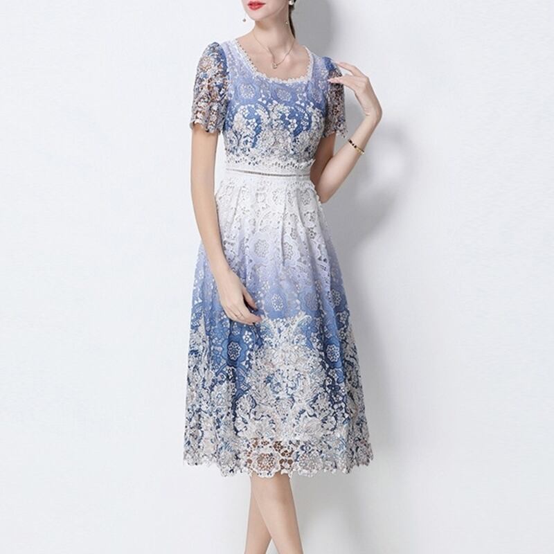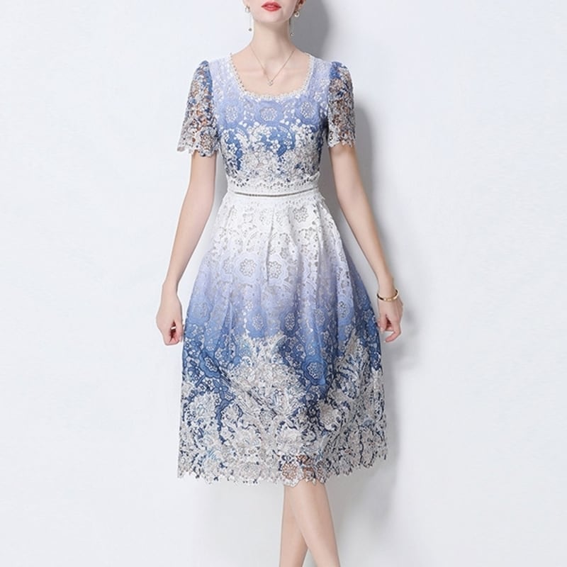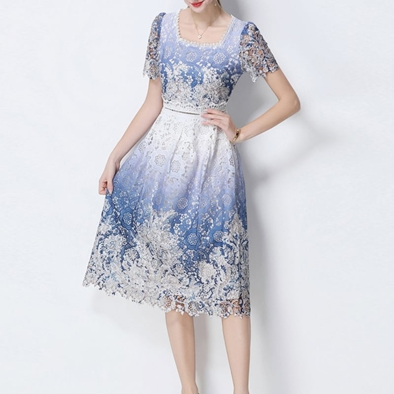 パンチングレースグラデーションドレス D0045