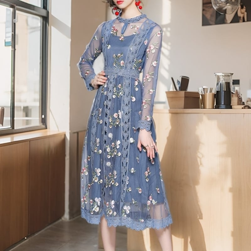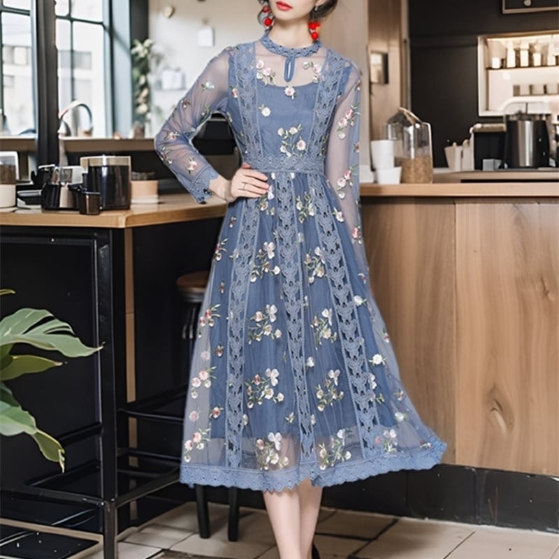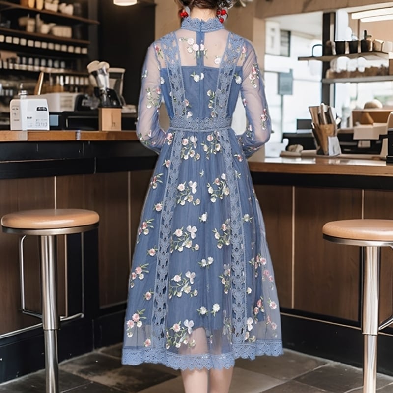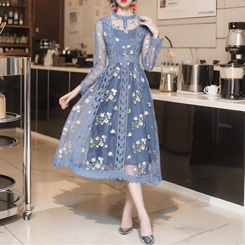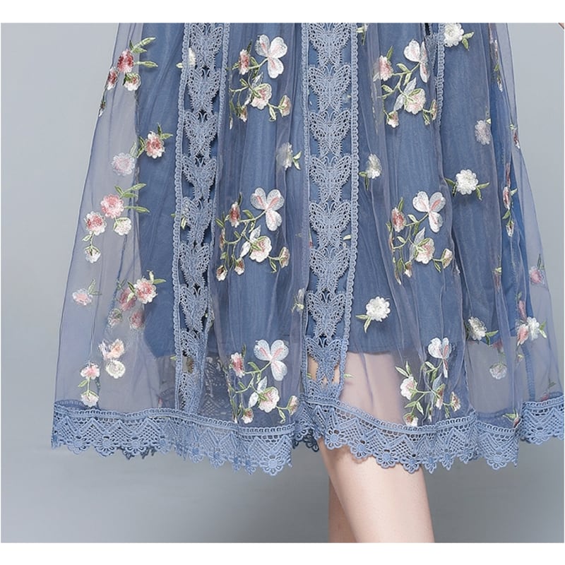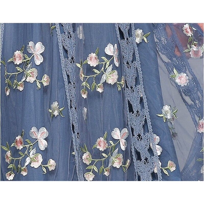 レースをあしらったチュールに華やかなフラワープリントが映えるシアードレスです。袖や足元のチュールの透け感が可愛らしい印象を演出します。普段使いから特別な日のコーディネートまで幅広く活躍する一着です。透け感をいかした個性的な仕立てで、Aラインスカートが体型を自然にカバーしてくれます。どんなシーンでも目を引く存在感を発揮しますので、ぜひお試しください!