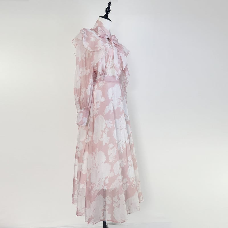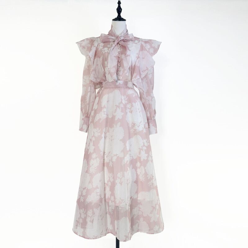 フラワープリントボウタイセットドレス2色展開 D0057
