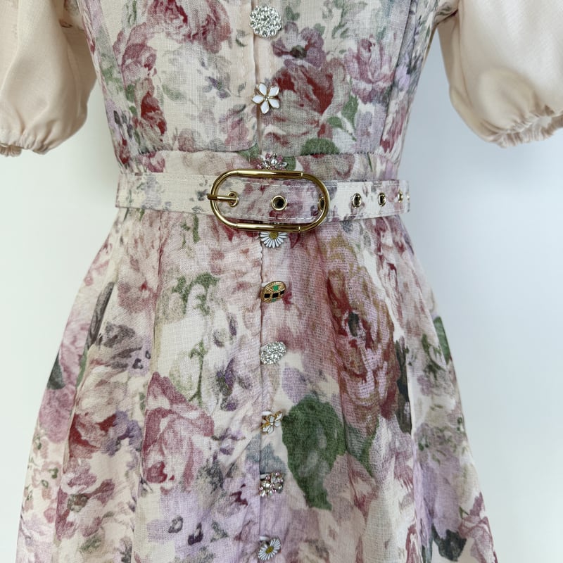 パフスリーブベルトフラワードレス D0059