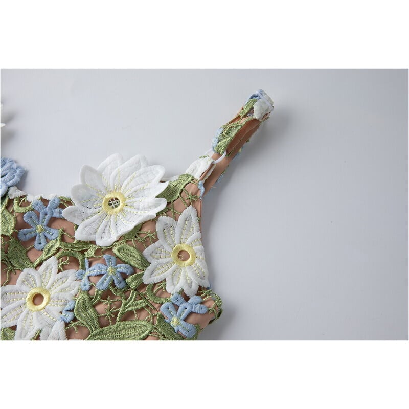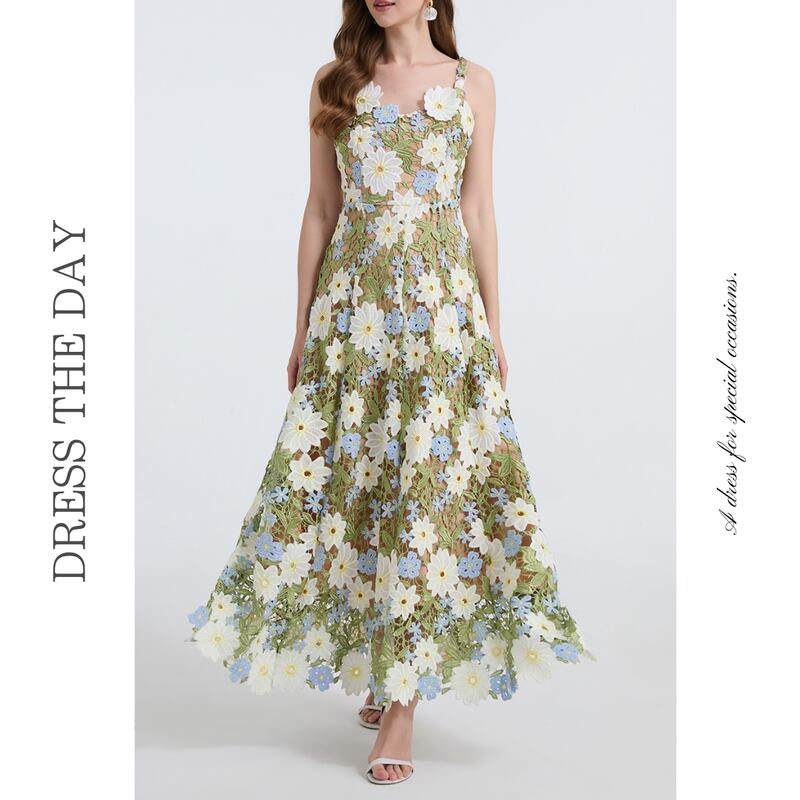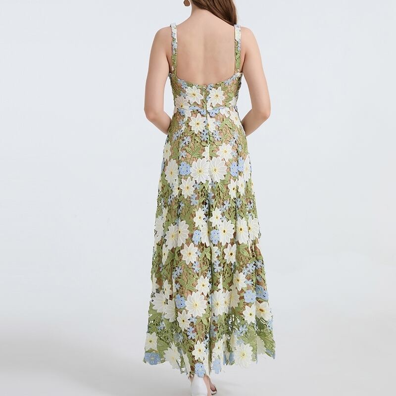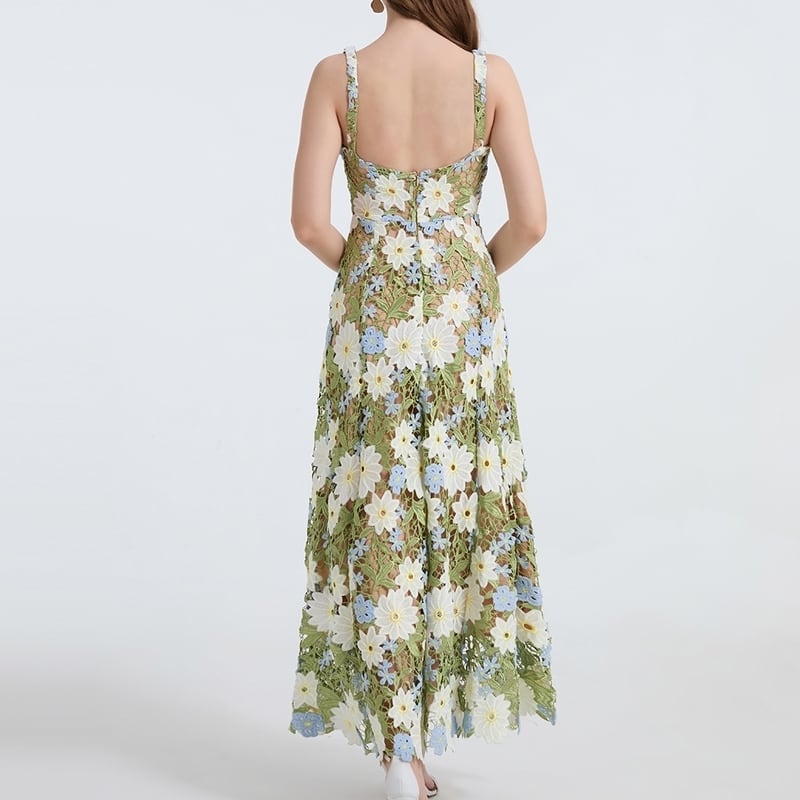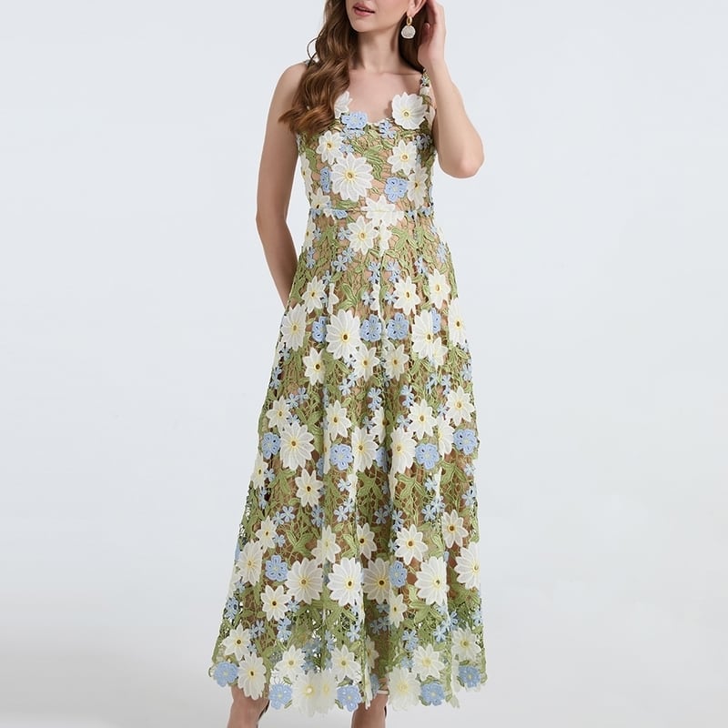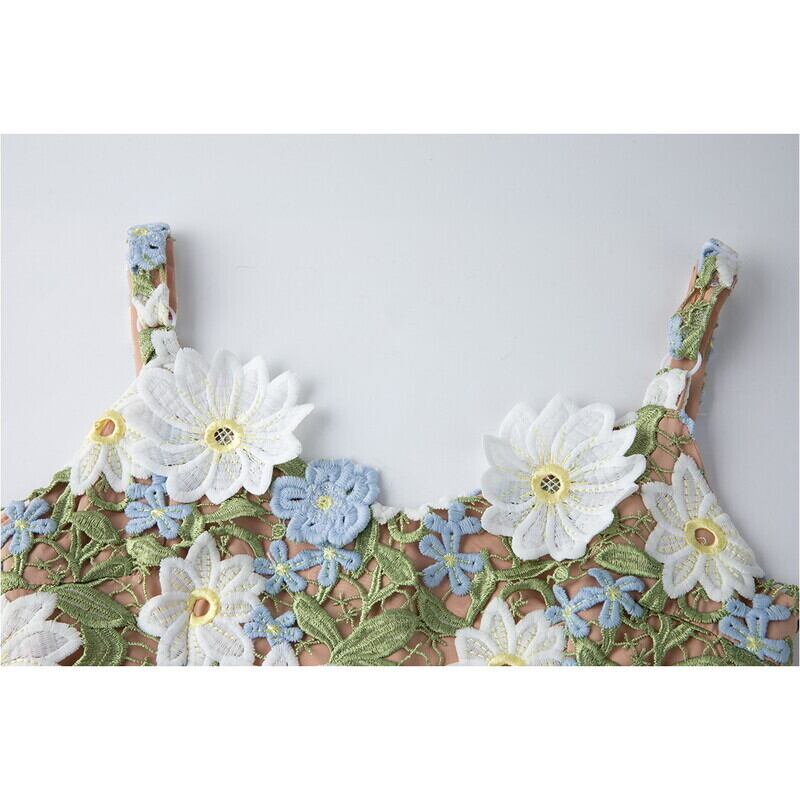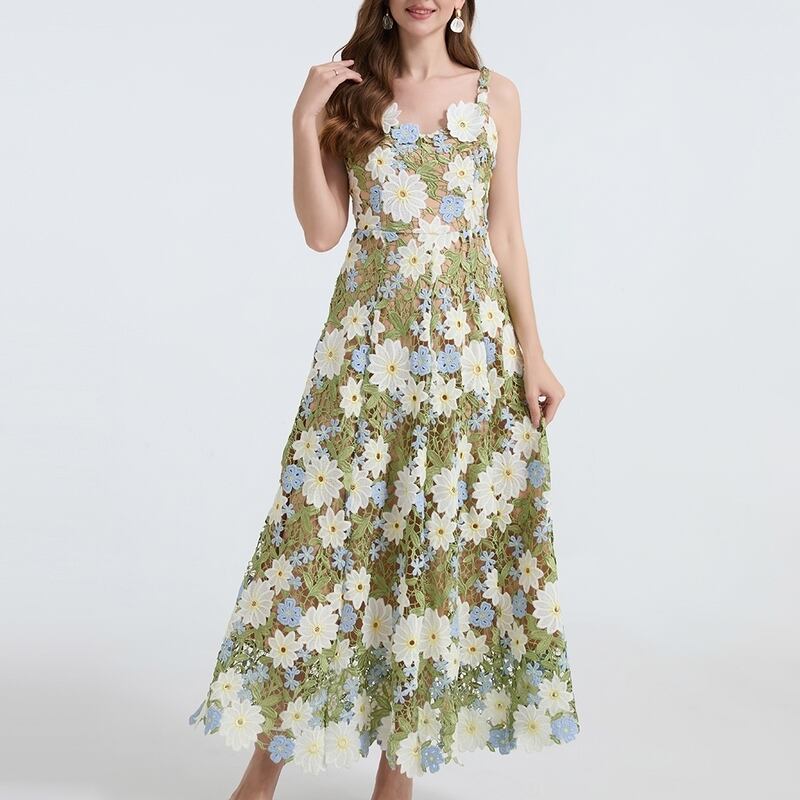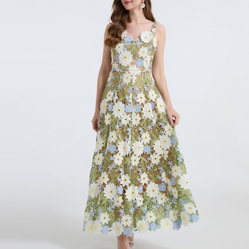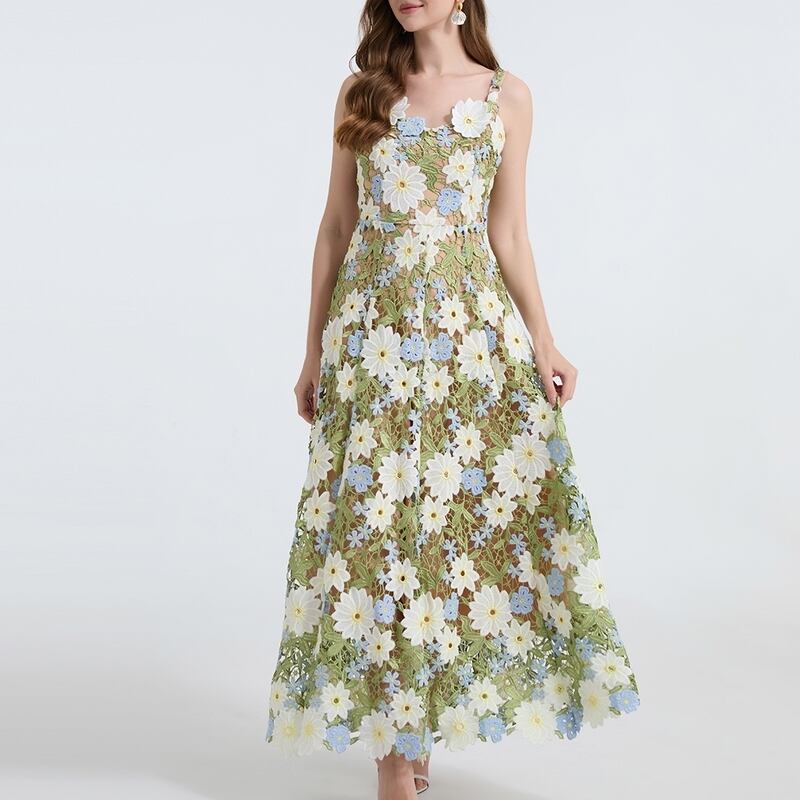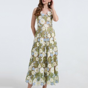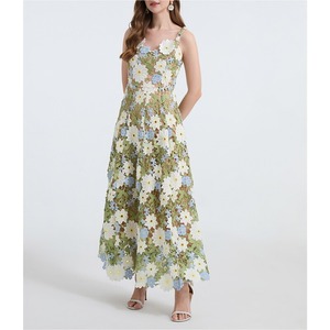フラワー刺繍キャミソールロングドレス D0067