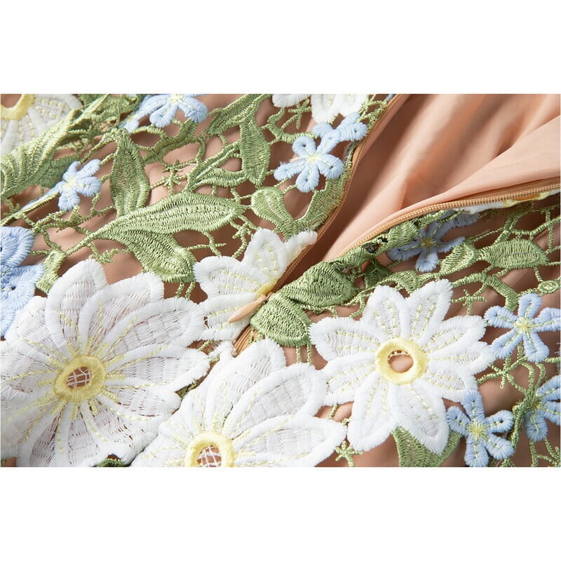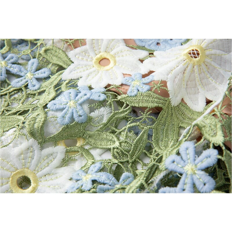 絶妙な色味のフラワー刺繍で仕立てた魅力的なロング丈キャミソールドレスです。上品なフレア感が魅力的で、ハイウエストがメリハリのある大人かわいい印象を与えます。普段使いから特別な日のコーディネートまで幅広く活躍しますので、どんな場面でもあなたを引き立ててくれること間違いなしです!