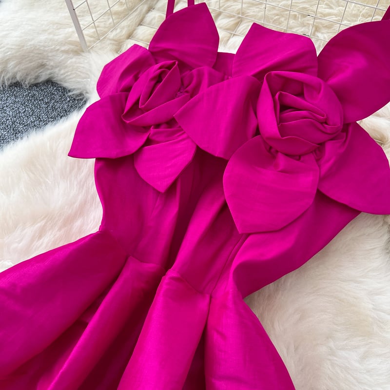 立体的なフラワーモチーフをデコルテに仕立てた魅力的なキャミソールドレスです。ふんわり上品なフレア感が魅力的で、ハイウエストがメリハリのある大人かわいい印象を与えます。普段使いから特別な日のコーディネートまで幅広く活躍しますので、どんな場面でもあなたを引き立ててくれること間違いなしです!