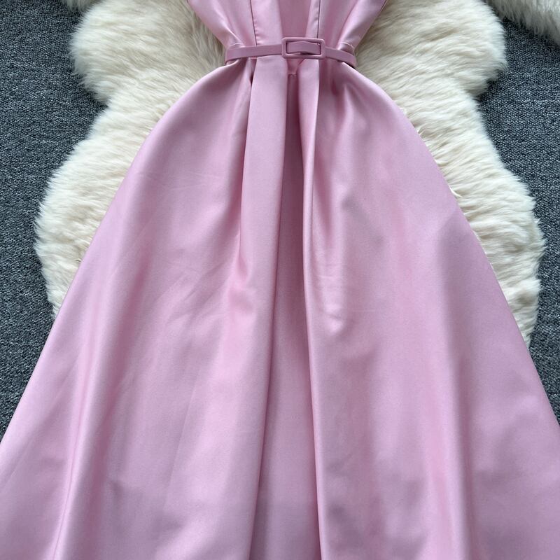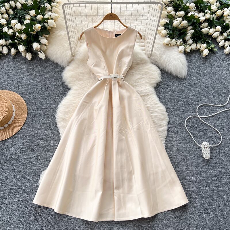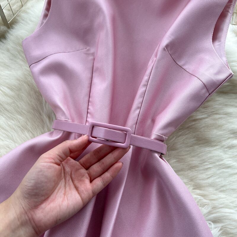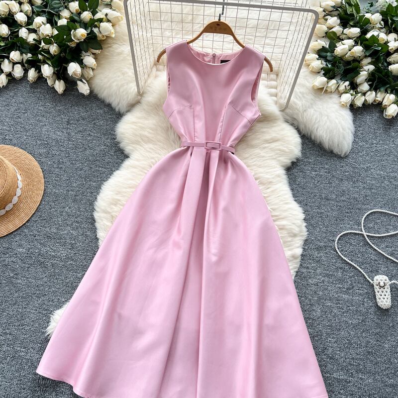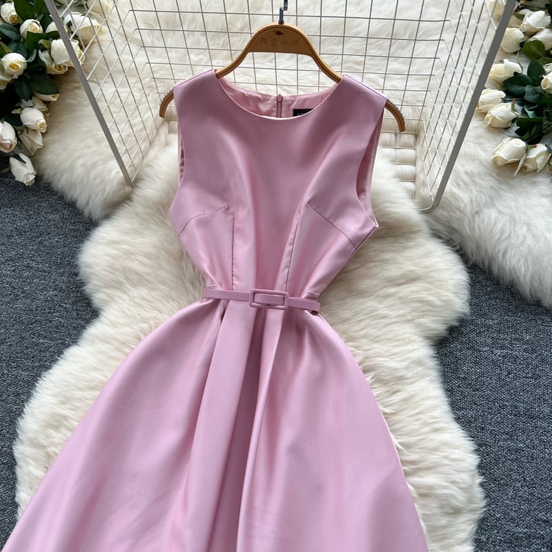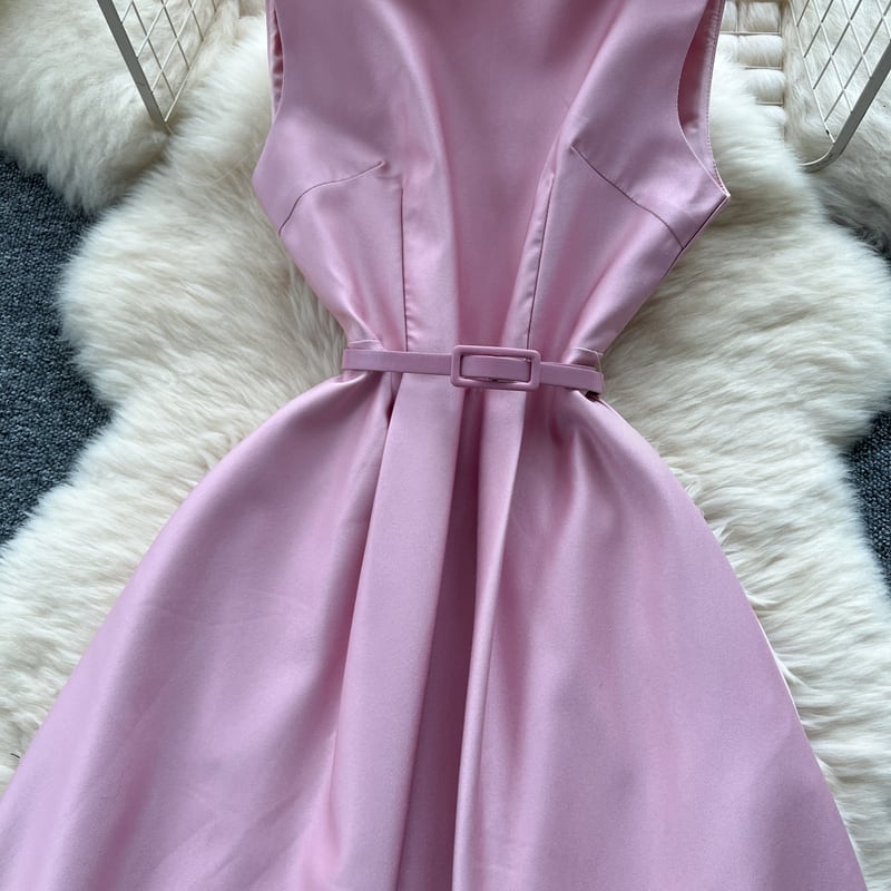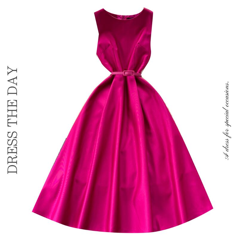 細めのベルトが映えるシンプルなデザインが洗練された、ノースリーブドレスです。ふんわりと上品なボリューム感のあるウエストマーク付きフレアスカートが大人かわいい印象を与えます。普段使いから特別な日のコーディネートまで幅広く活躍しますので、どんな場面でもあなたを引き立ててくれること間違いなしです!