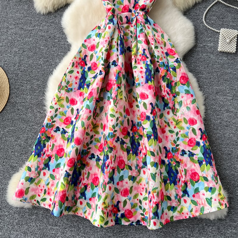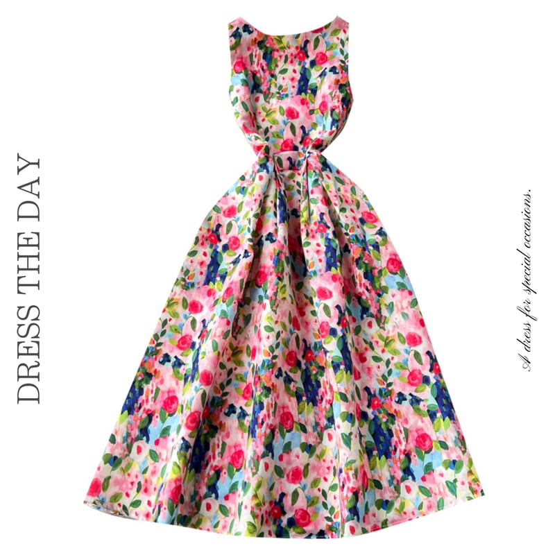ハイウエストに立体的なタックをあしらったデザインが洗練された、フラワーノースリーブドレスです。ふんわりと上品なボリューム感のあるフレアスカートが大人かわいい印象を与えます。普段使いから特別な日のコーディネートまで幅広く活躍しますので、どんな場面でもあなたを引き立ててくれること間違いなしです!