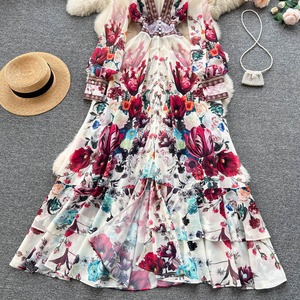 Vネックボヘミアンフラワードレス2色展開 D0086