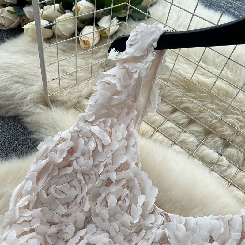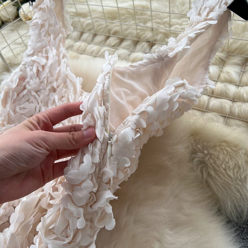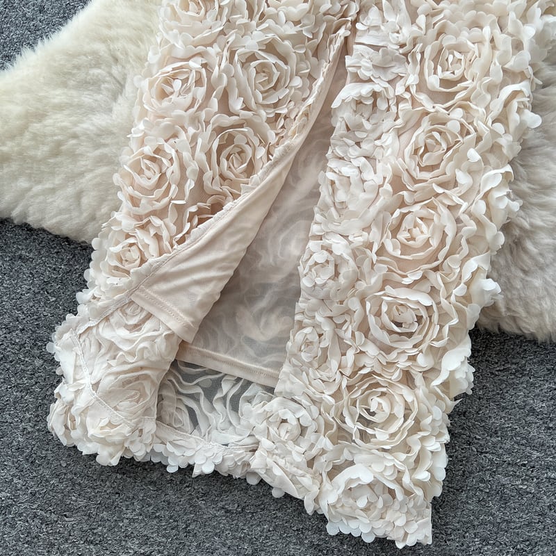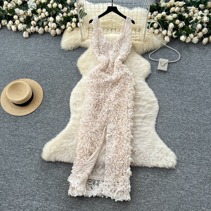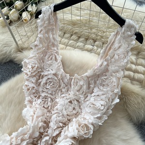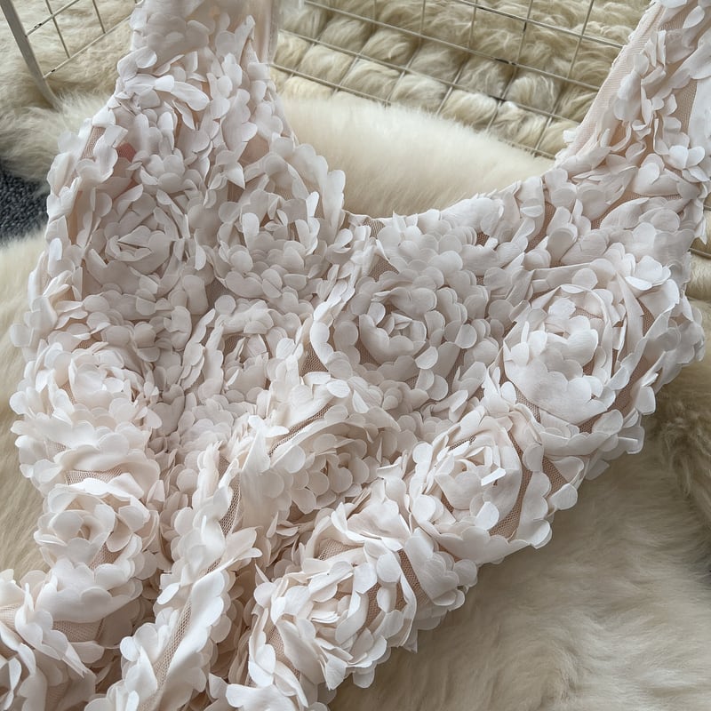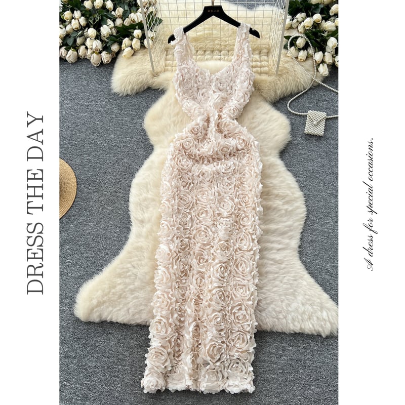 立体的なフラワーモチーフをあしらった仕立てが魅力的なキャミソールドレスです。バックスリット入りのペンシルスカートが洗練されており、ハイウエストがメリハリのある大人かわいい印象を与えます。普段使いから特別な日のコーディネートまで幅広く活躍しますので、どんな場面でもあなたを引き立ててくれること間違いなしです!
