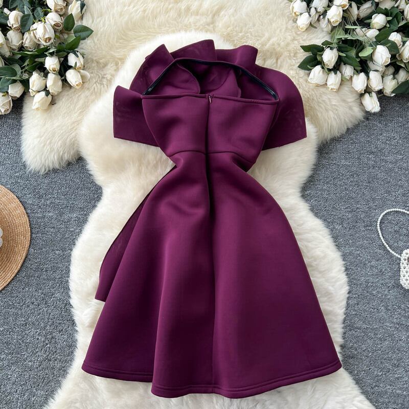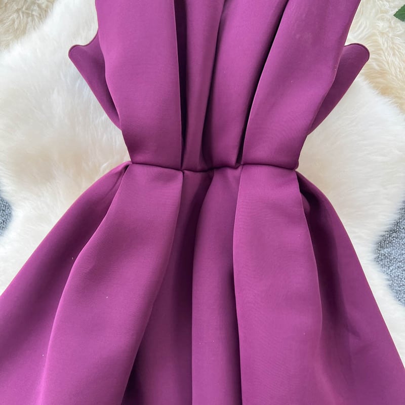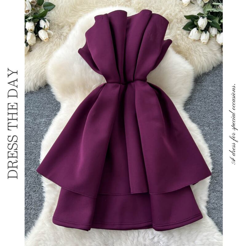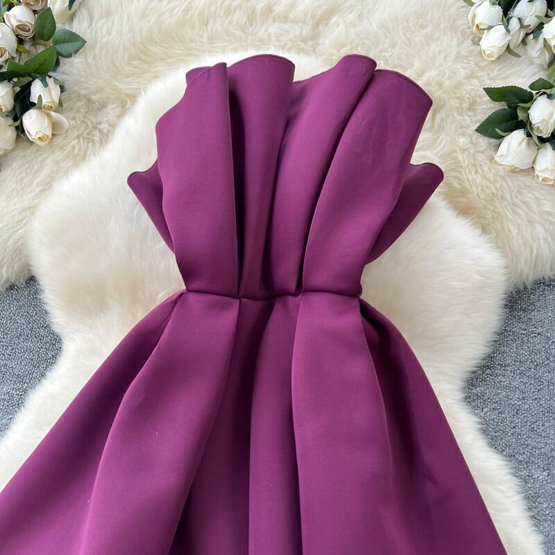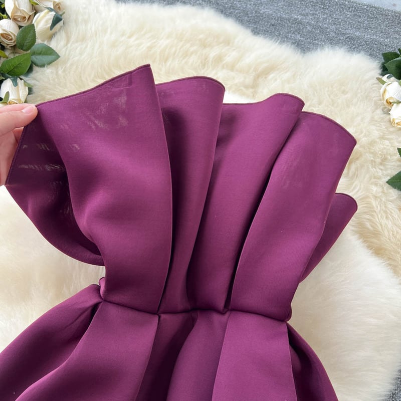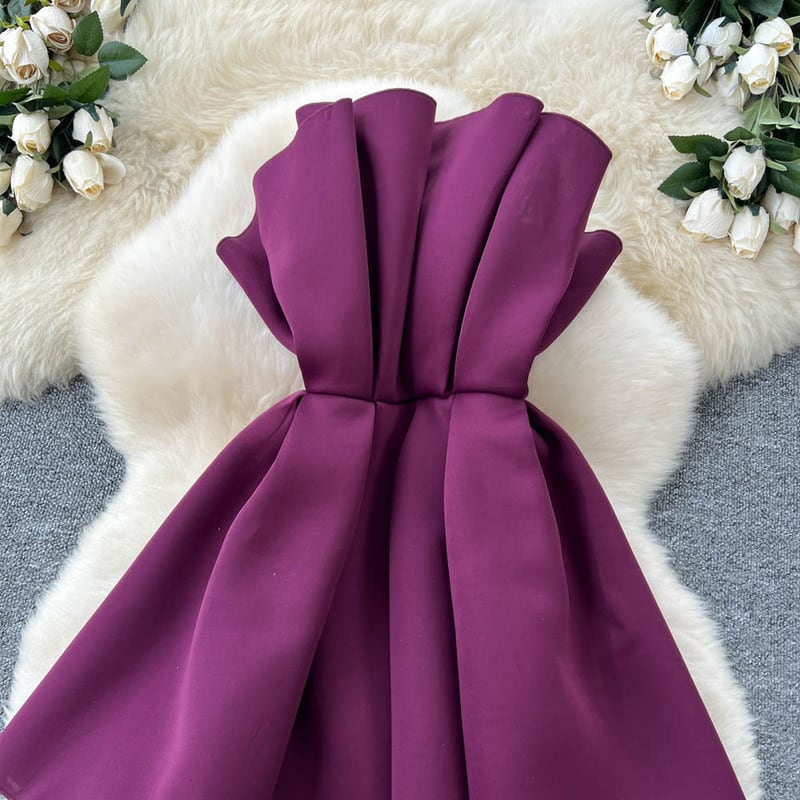 プリーツストラップレスミニドレス D0089