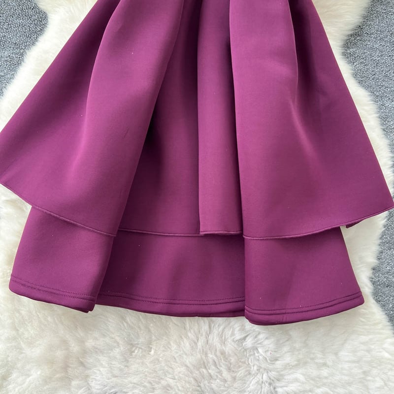 立体的なプリーツをあしらいふんわりとしたシルエットに仕立てたストラップレスドレスです。ふんわり上品なフレア感が魅力の2層スカートでで、ハイウエストがメリハリのある大人かわいい印象を与えます。普段使いから特別な日のコーディネートまで幅広く活躍しますので、どんな場面でもあなたを引き立ててくれること間違いなしです!