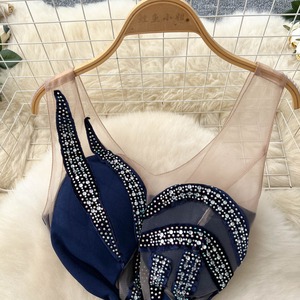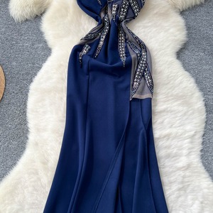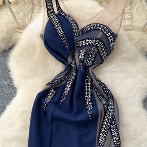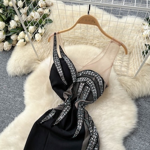 アシンメトリーラインストーンフレアドレス2色展開 D0100