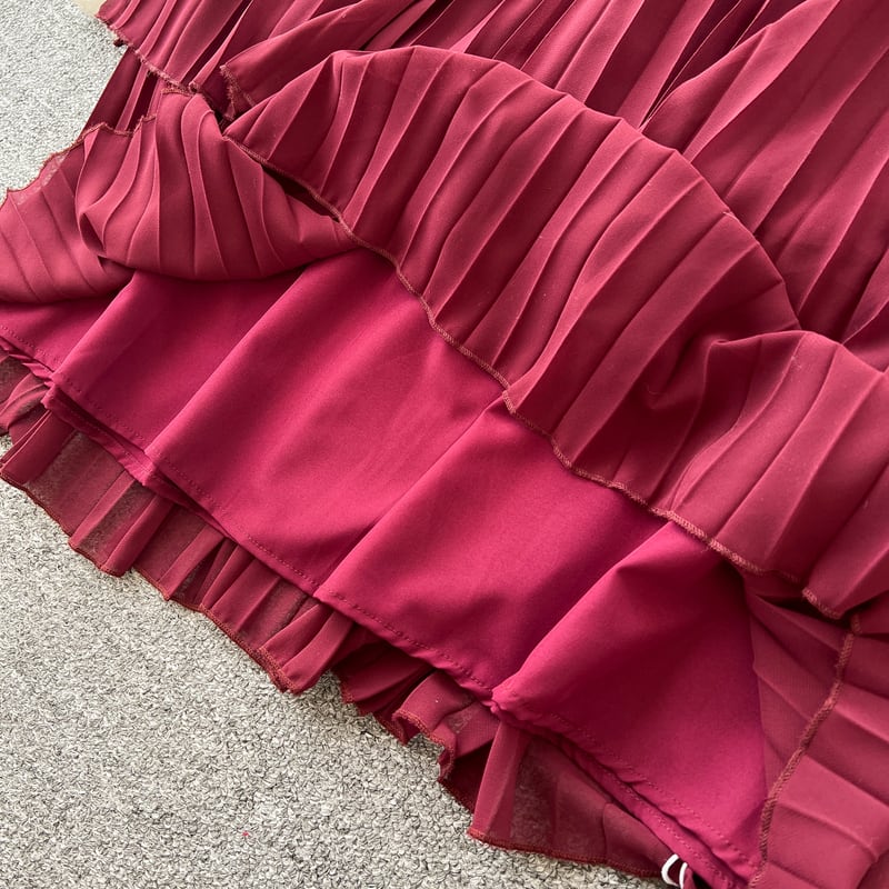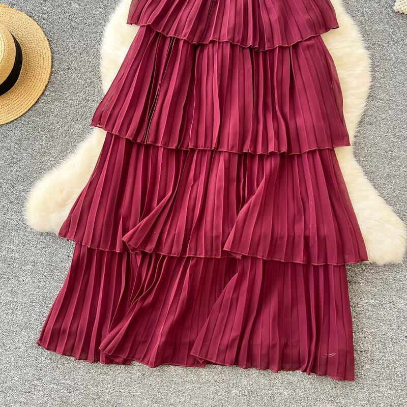ハイウエストプリーツティアードドレス D0110