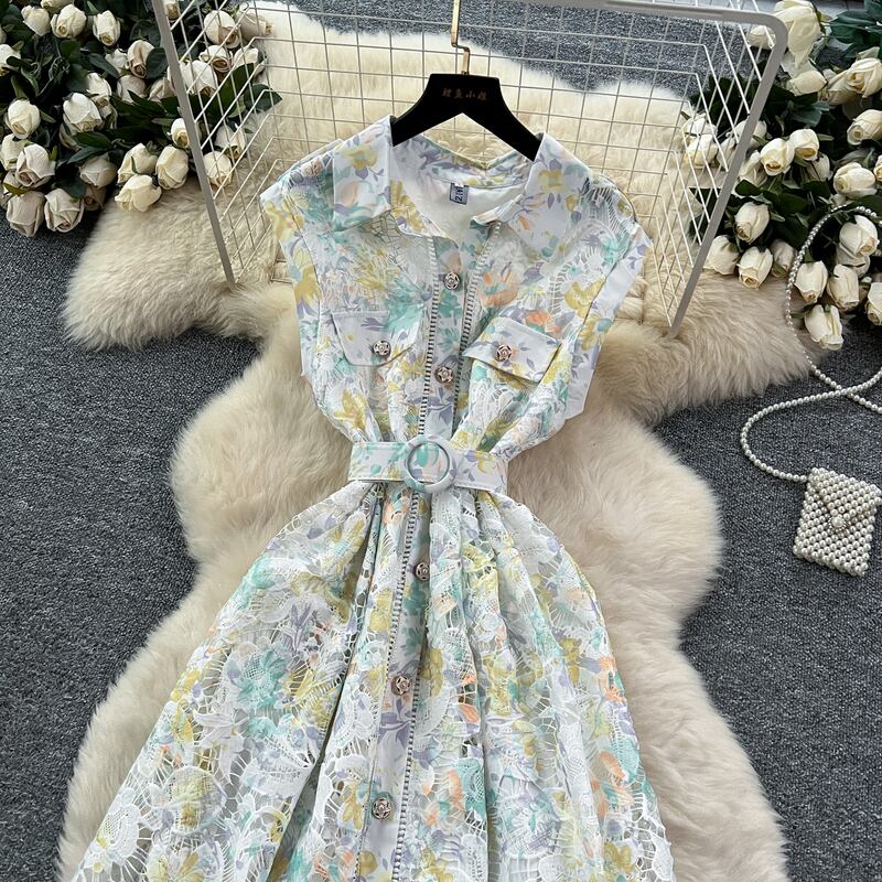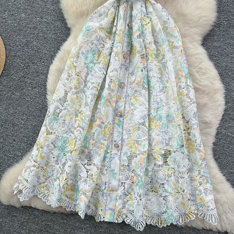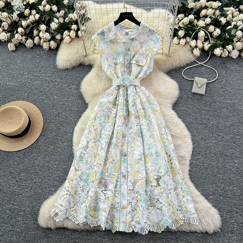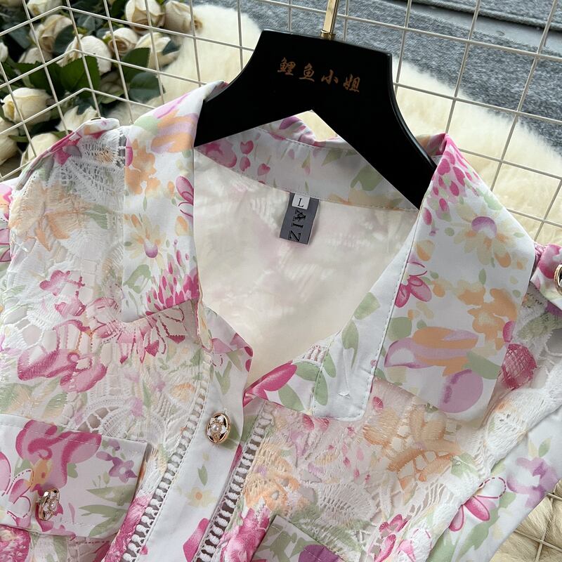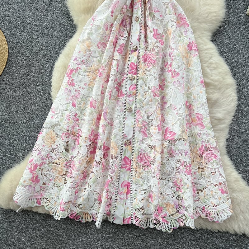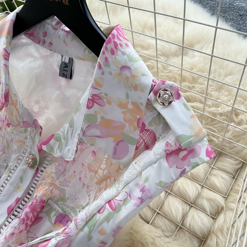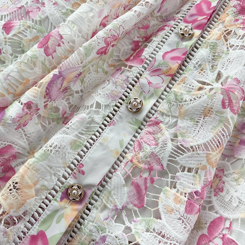 淡いフラワーレースが魅力的な、さり気なく透け感のあるシャツドレスです。カジュアルなシャツタイプが可愛らしい印象で、レース装飾が軽やかな華やかさを演出します。普段使いから特別な日のコーディネートまで幅広く活躍する一着です。ミモレ着丈は体型を自然にカバーしてくれます。どんなシーンでも目を引く存在感を発揮しますので、ぜひお試しください!