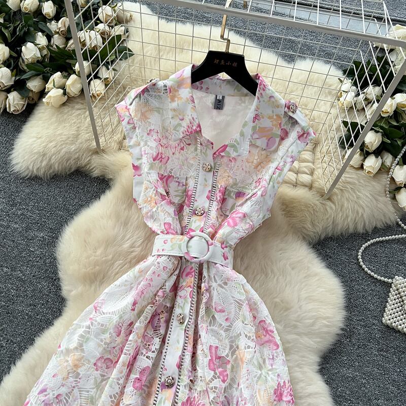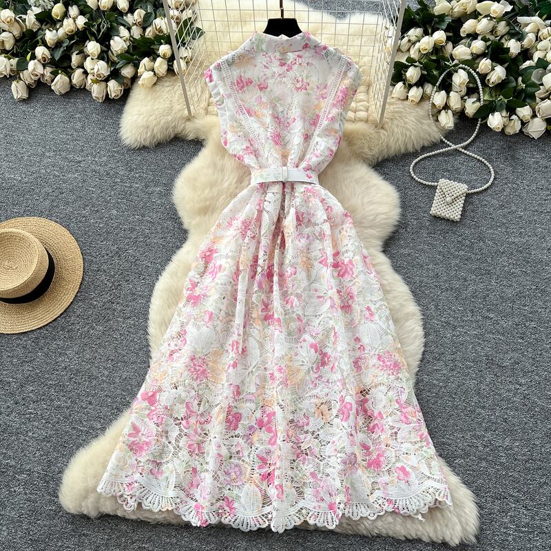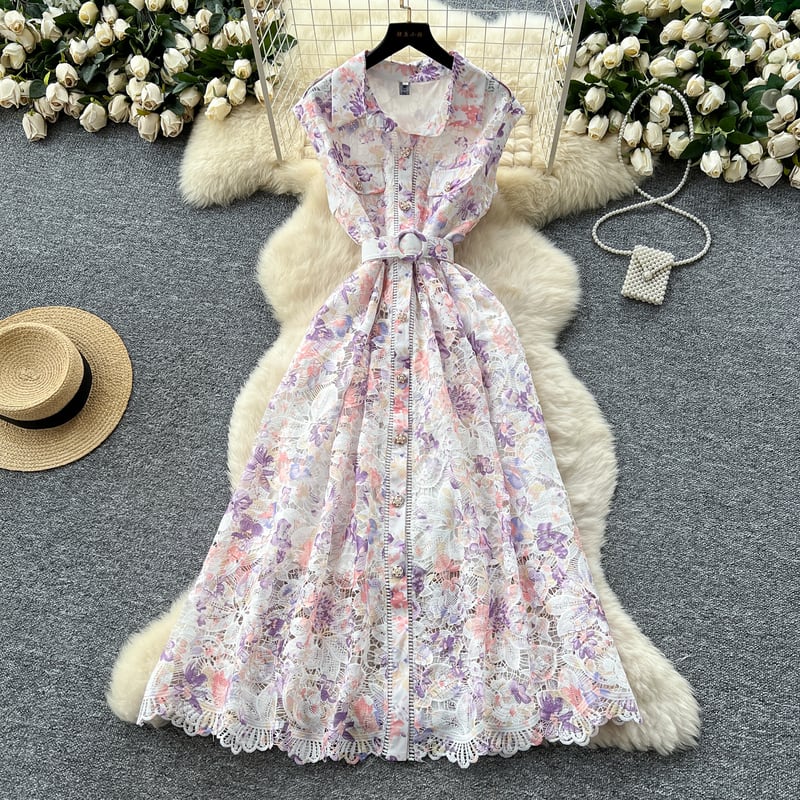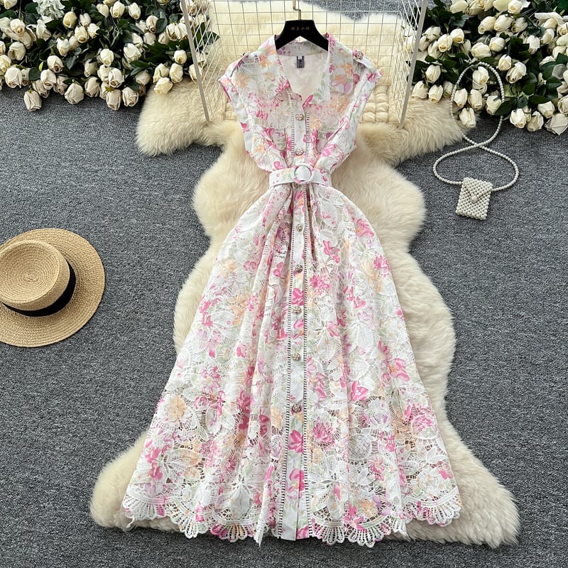 総レースウエストマークフラワードレス3色展開 D0119
