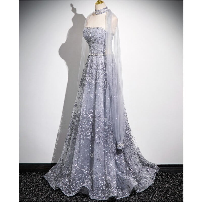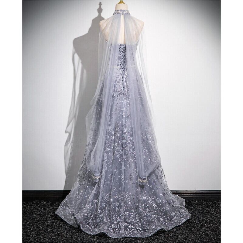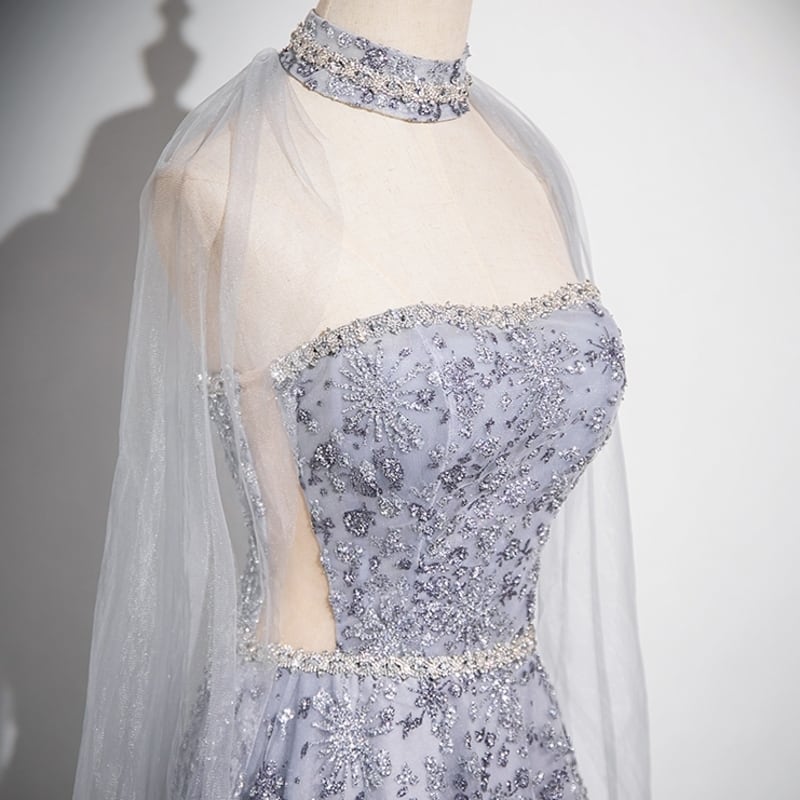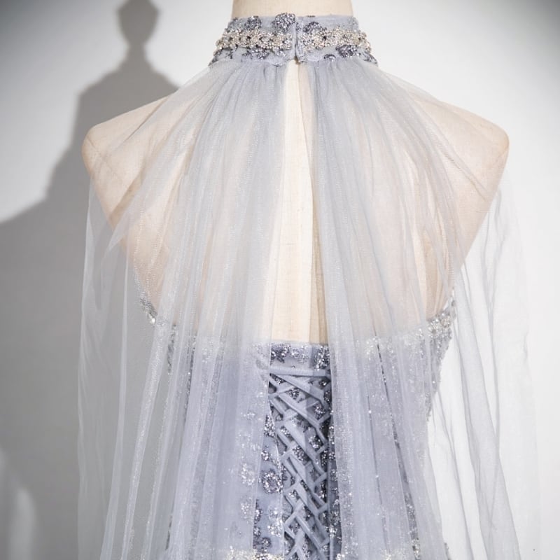 クリスタル刺繍2WAYスリーブドレス D0175