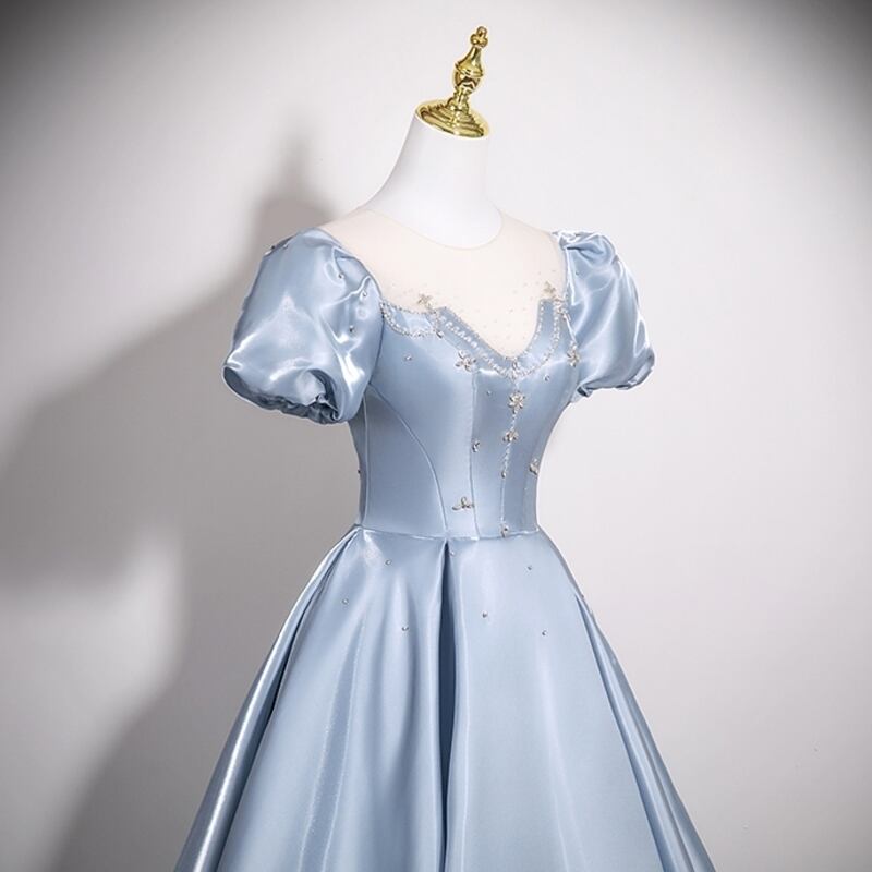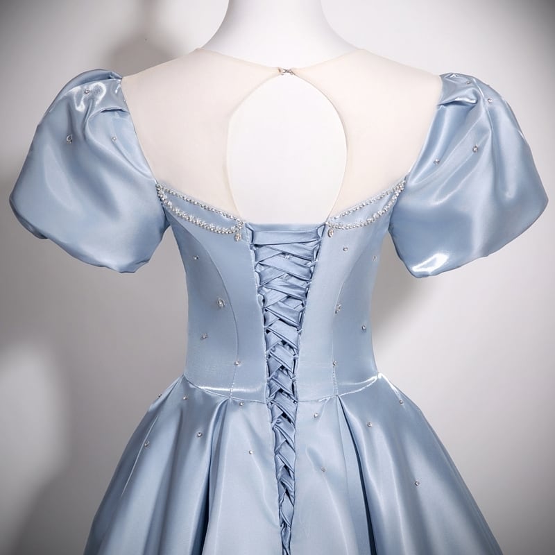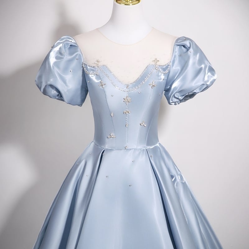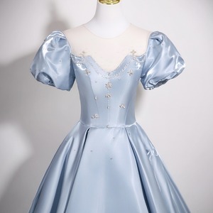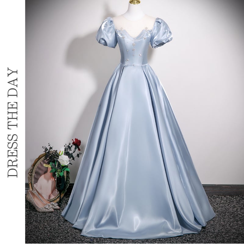 バストのビジュー装飾が繊細で華やかなバルーンスリーブドレスです。艶のある高級感あふれる素材は、特別な日のコーディネートに華やかさを添えます。デコルテにはメッシュをあしらい透け感を演出しセクシーな印象で、女性らしいシルエットを引き立てます。タック入りスカートはロング丈で動くたびに美しいドレープを描くため、さまざまなシーンであなたの個性を際立てる一着です。