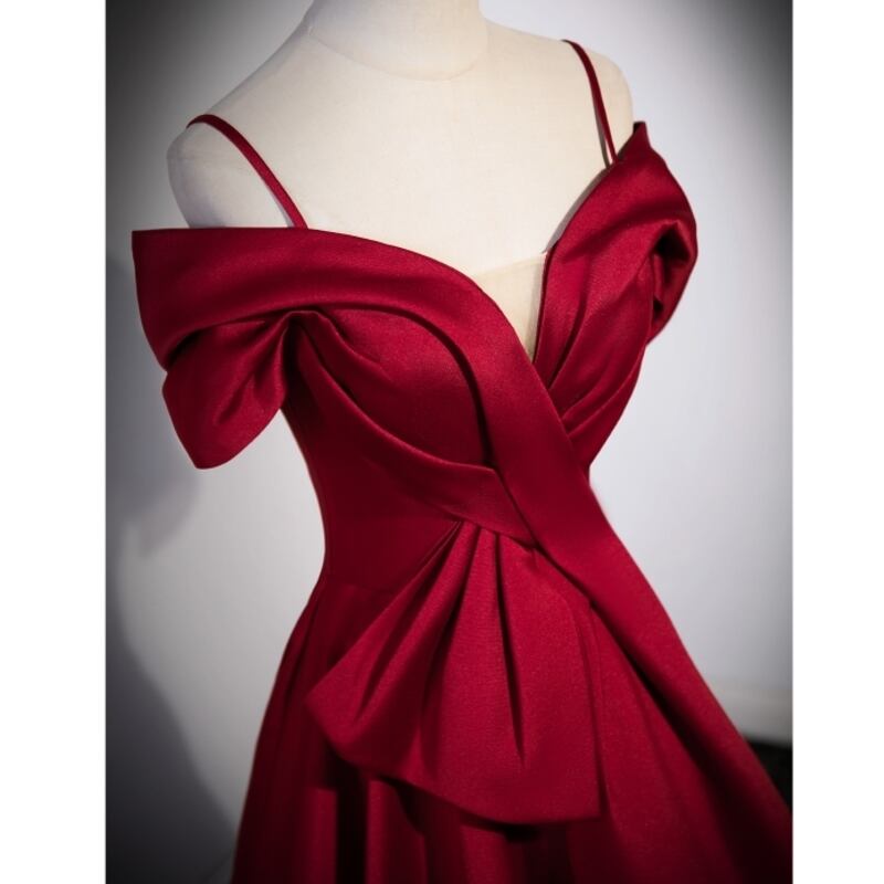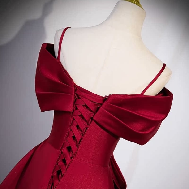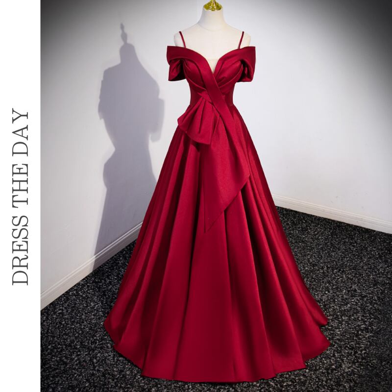 タックを寄せたリボンデザインがボリューム感のあるドレッシーなキャミソールドレスです。上品な艶が高級感あふれる素材は、特別な日のコーディネートに華やかさを添えます。華奢なストラップデザインがデコルテにセクシーな印象を演出しており、レースアップをあしらった後ろ姿まで女性らしいシルエットを引き立てます。