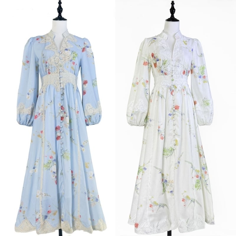 スタンドカラーフラワーレースドレス2色展開 D0184
