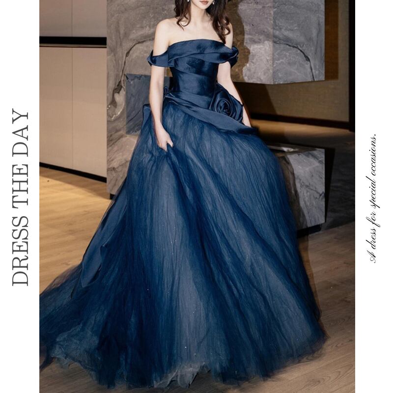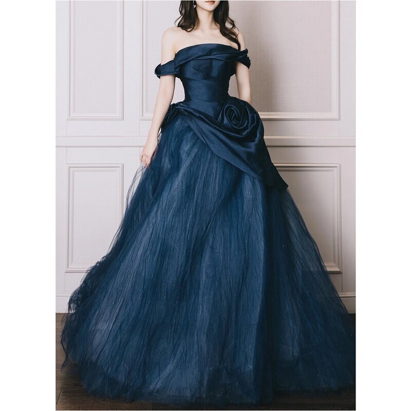 ウエストにあしらったフラワーモチーフのボリューム感が目を引くオフショルドレスです。ふんわりとチュールをレイヤードした仕立ては、特別な日のコーディネートに華やかさを添えます。大胆なオフショルダーデザインがセクシーな印象を演出しており、女性らしいシルエットを引き立てます。華やかなロングスカートは、さまざまなシーンであなたの個性を際立てる一着です。
