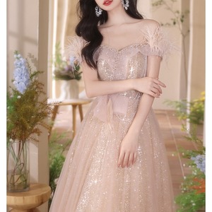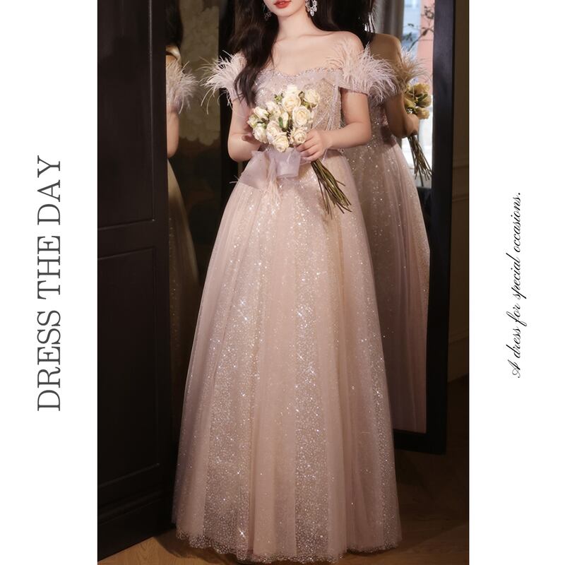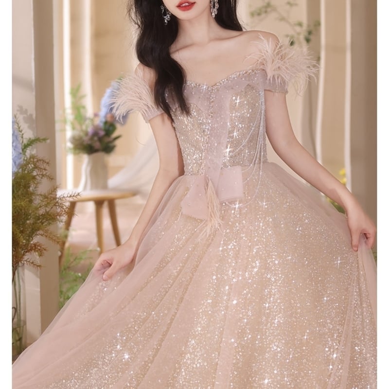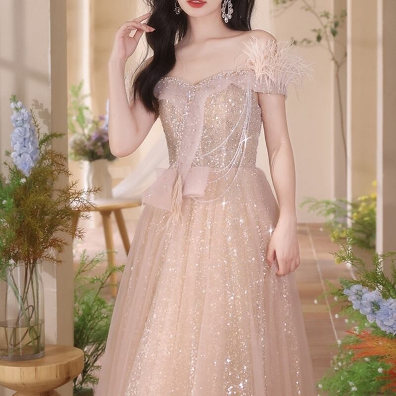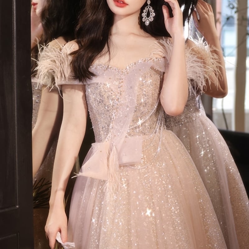 チュールグリッターオフショルマキシドレス D0205