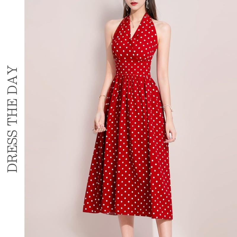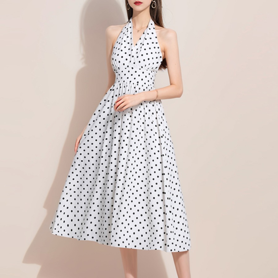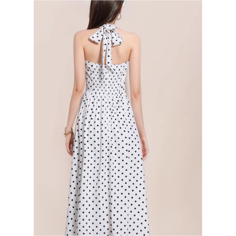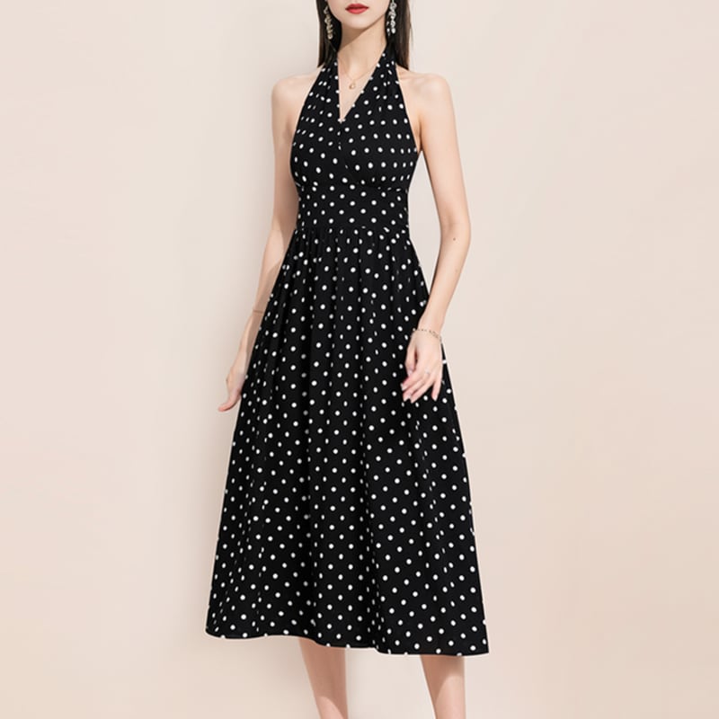 ホルターネックノースリーブドットドレス3色展開 D0214
