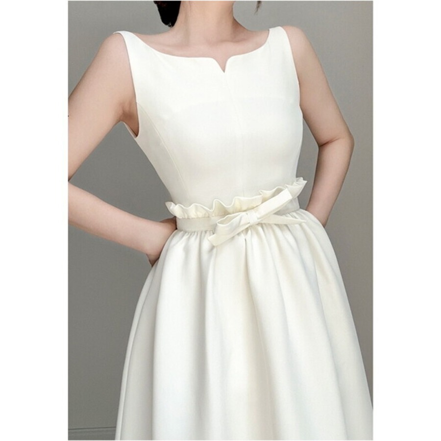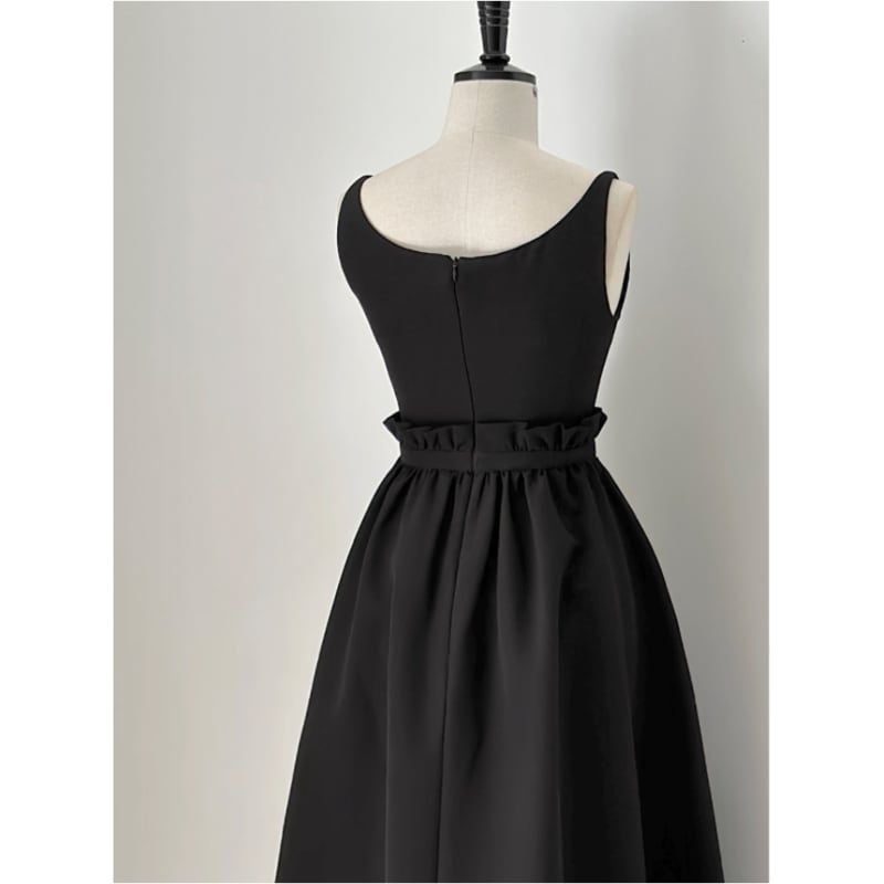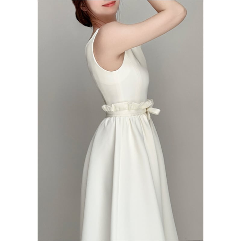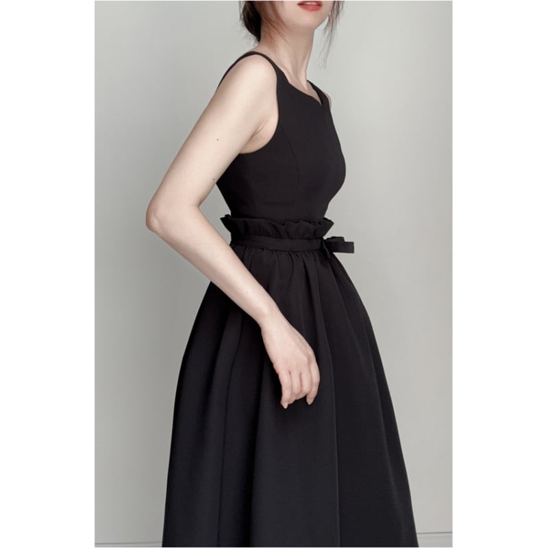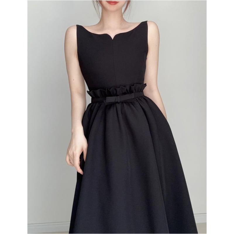 キーネックノースリーブギャザードレス2色展開 D0216