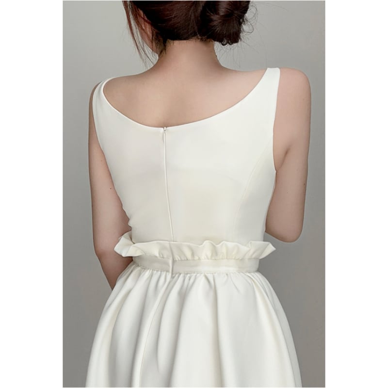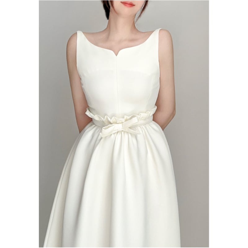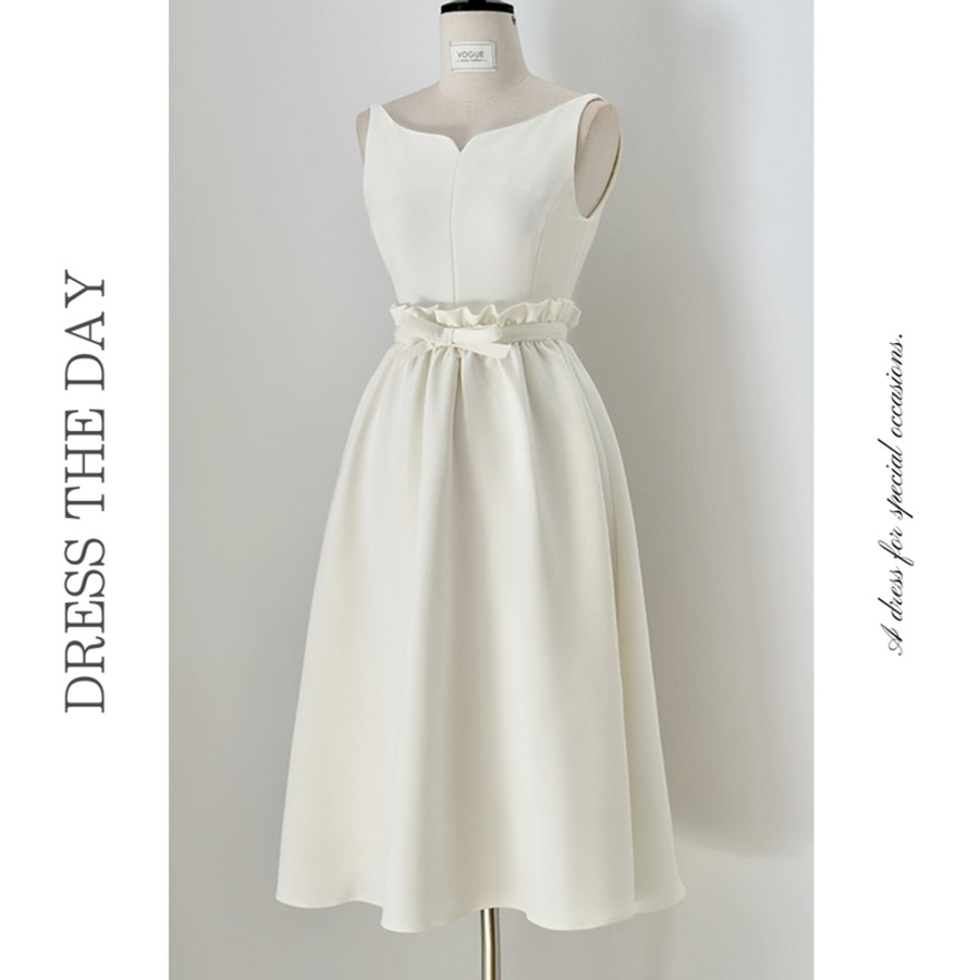 すっきりシンプルなキーネックトップスに、スカートがドッキングしたようなミモレ丈ドレスです。デコルテまわりの繊細なデザインがガーリーなニュアンスをプラスし、ふんわりと上品なボリューム感のあるギャザースカートが大人かわいい印象を与えます。普段使いから特別な日のコーディネートまで幅広く活躍しますので、どんな場面でもあなたを引き立ててくれます。