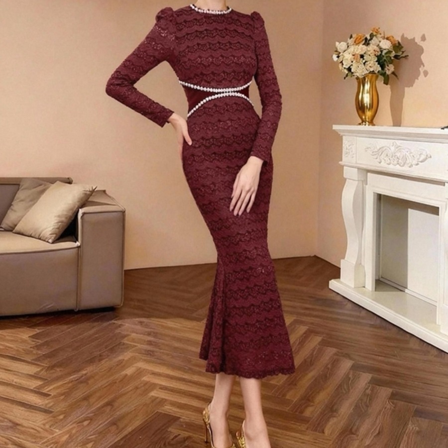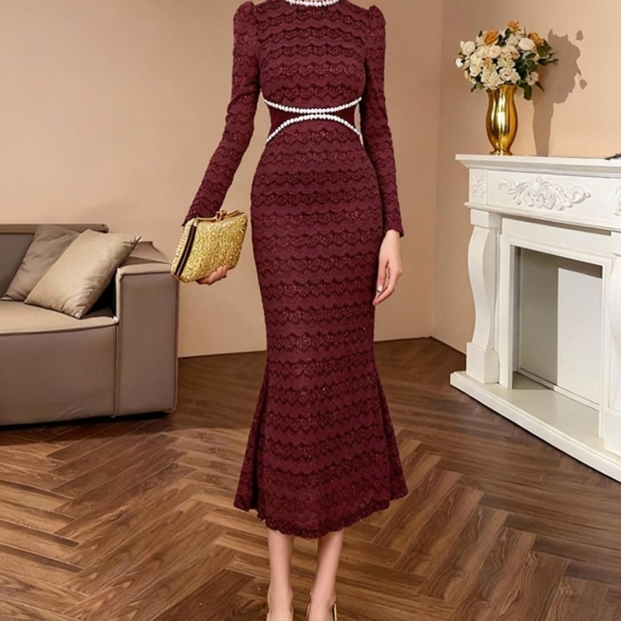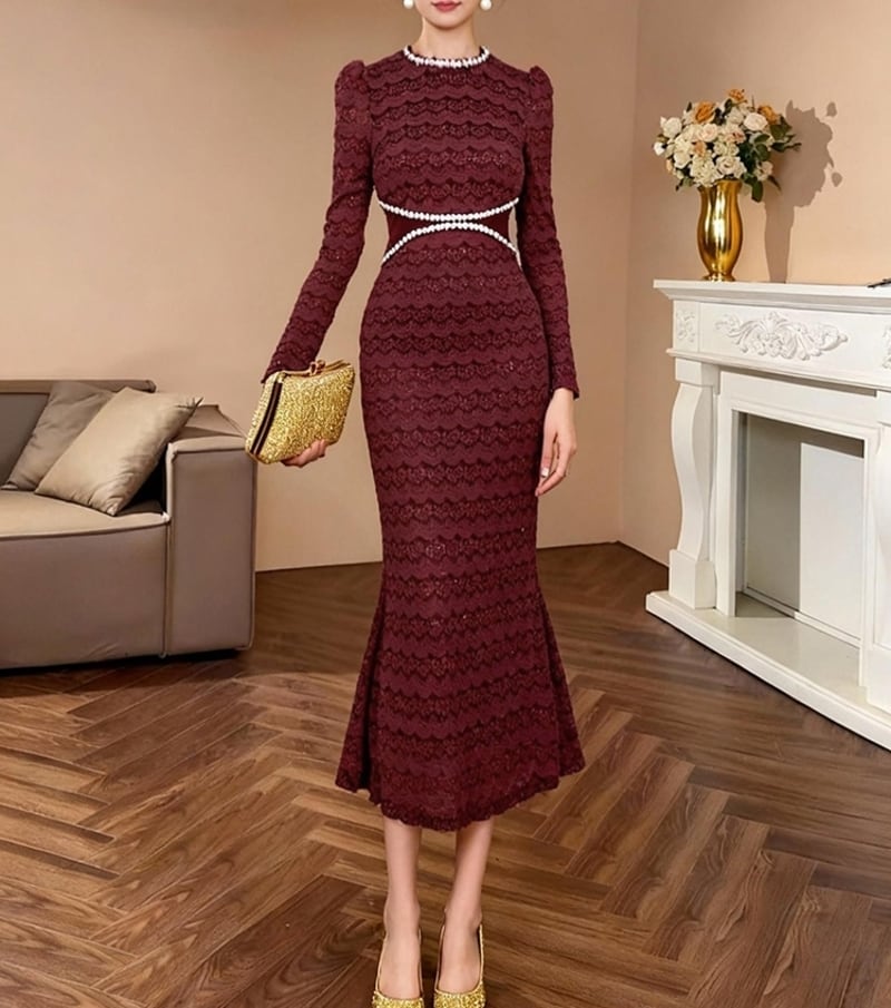 総レースビーズ装飾マーメイドドレス D0224