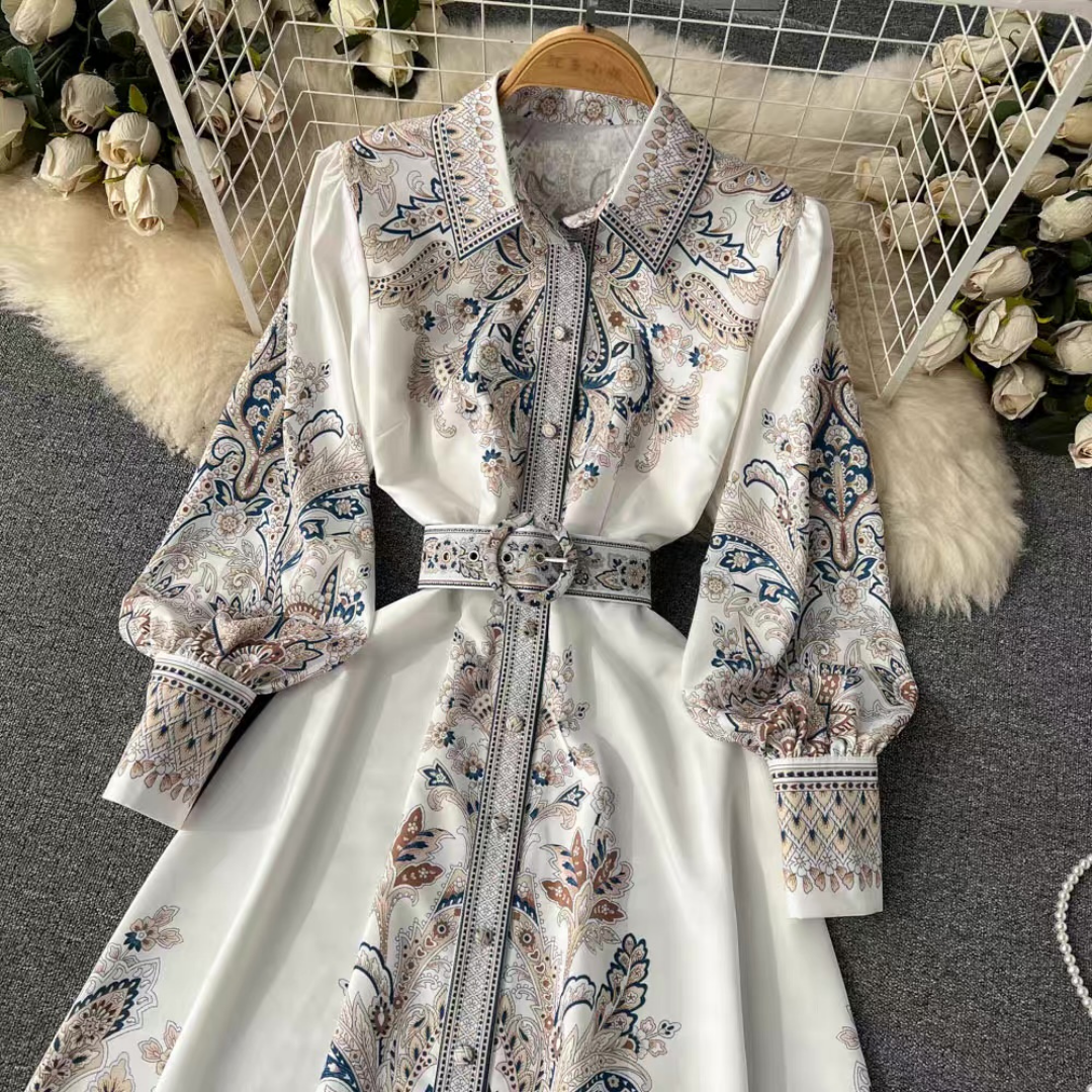 ペイズリープリントベルトロングシャツドレス 2色展開 D0234
