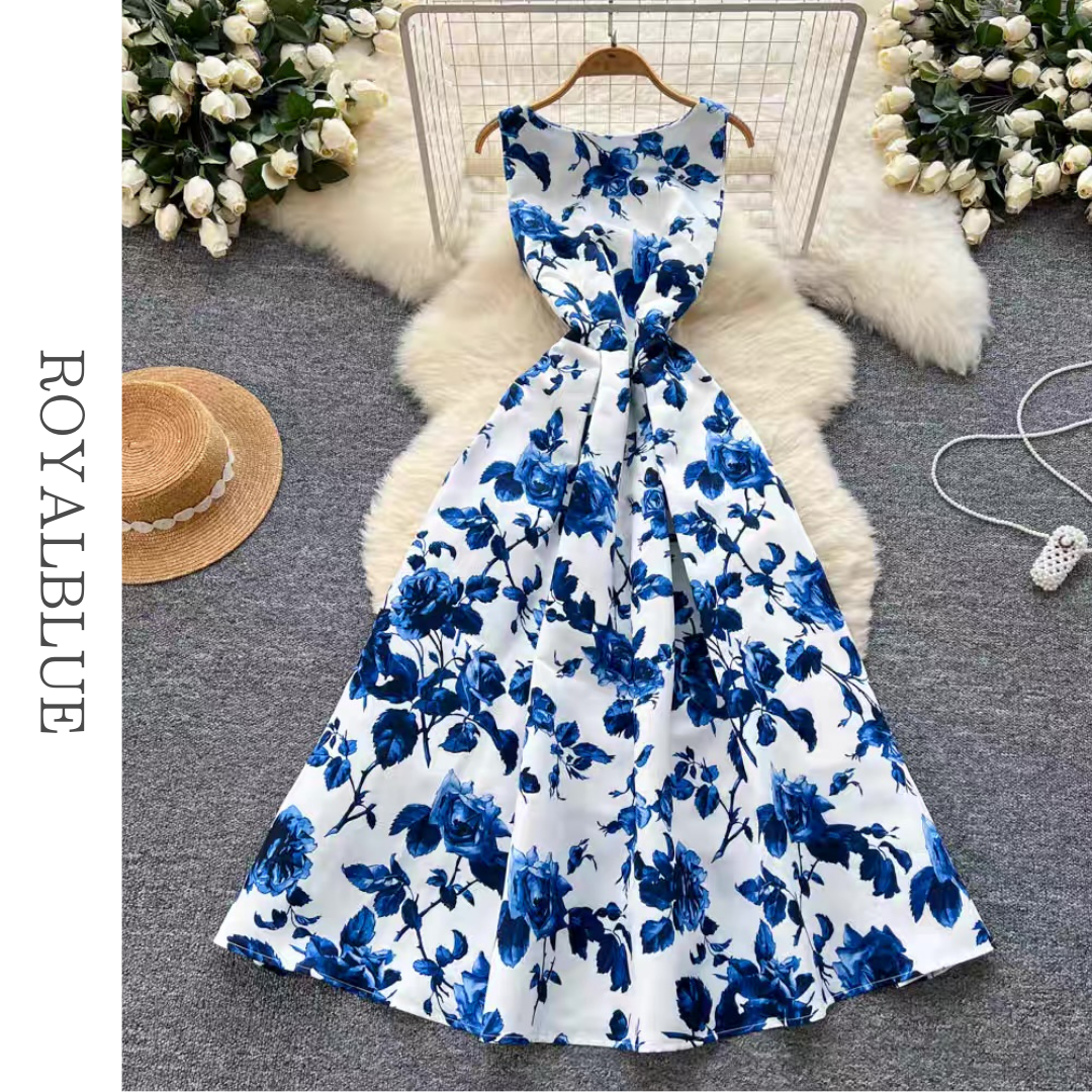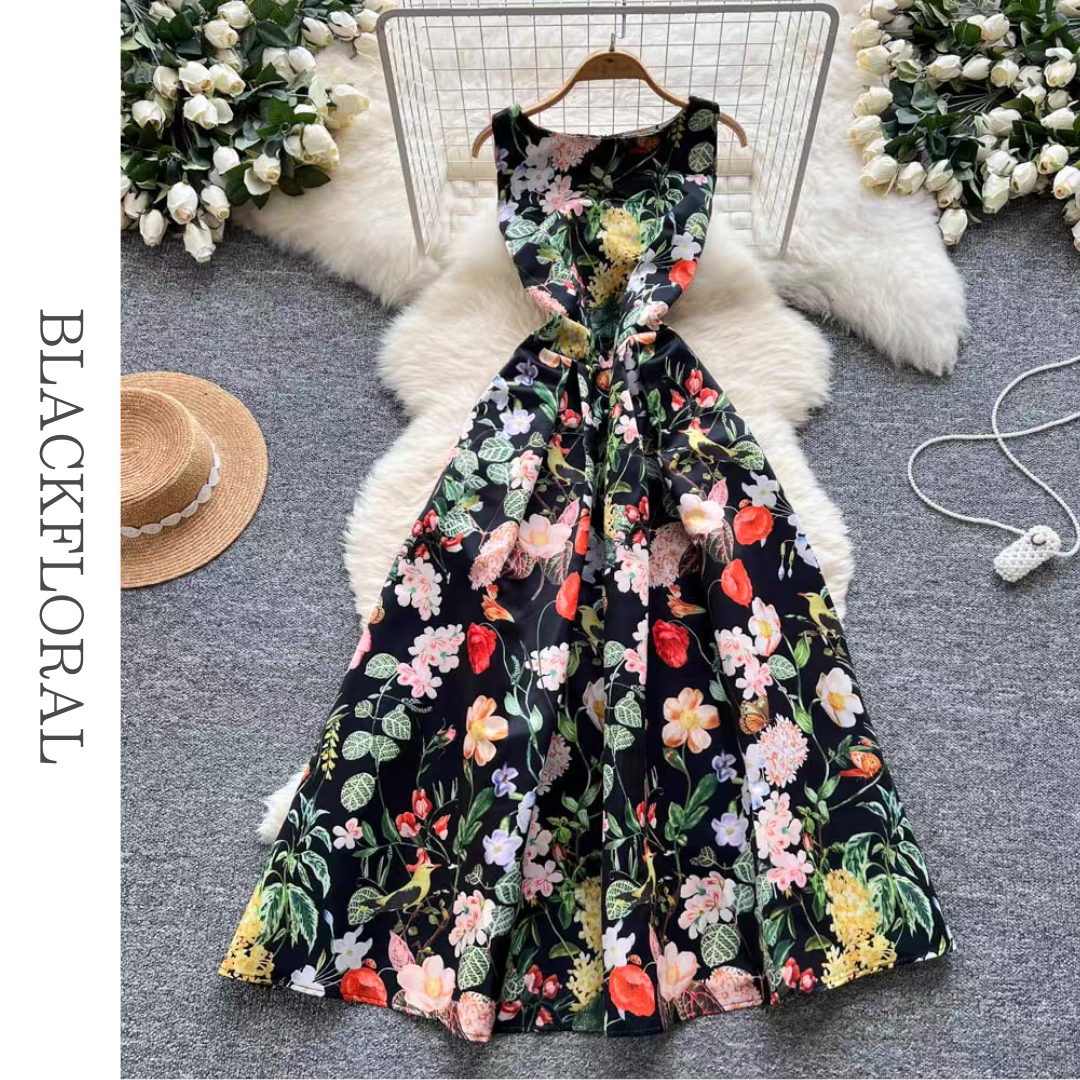 フラワープリントフレアロングドレス 16色展開 D0240