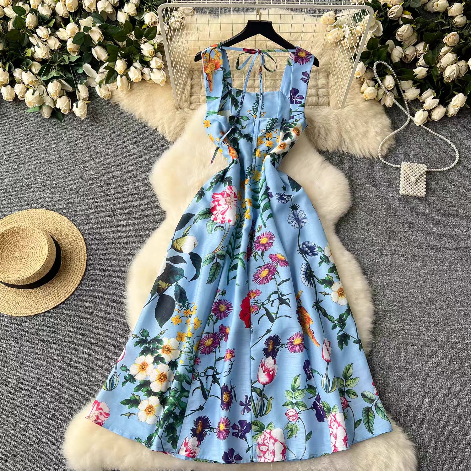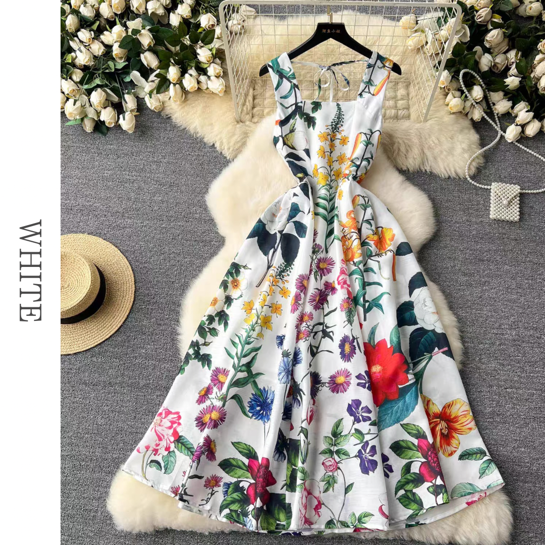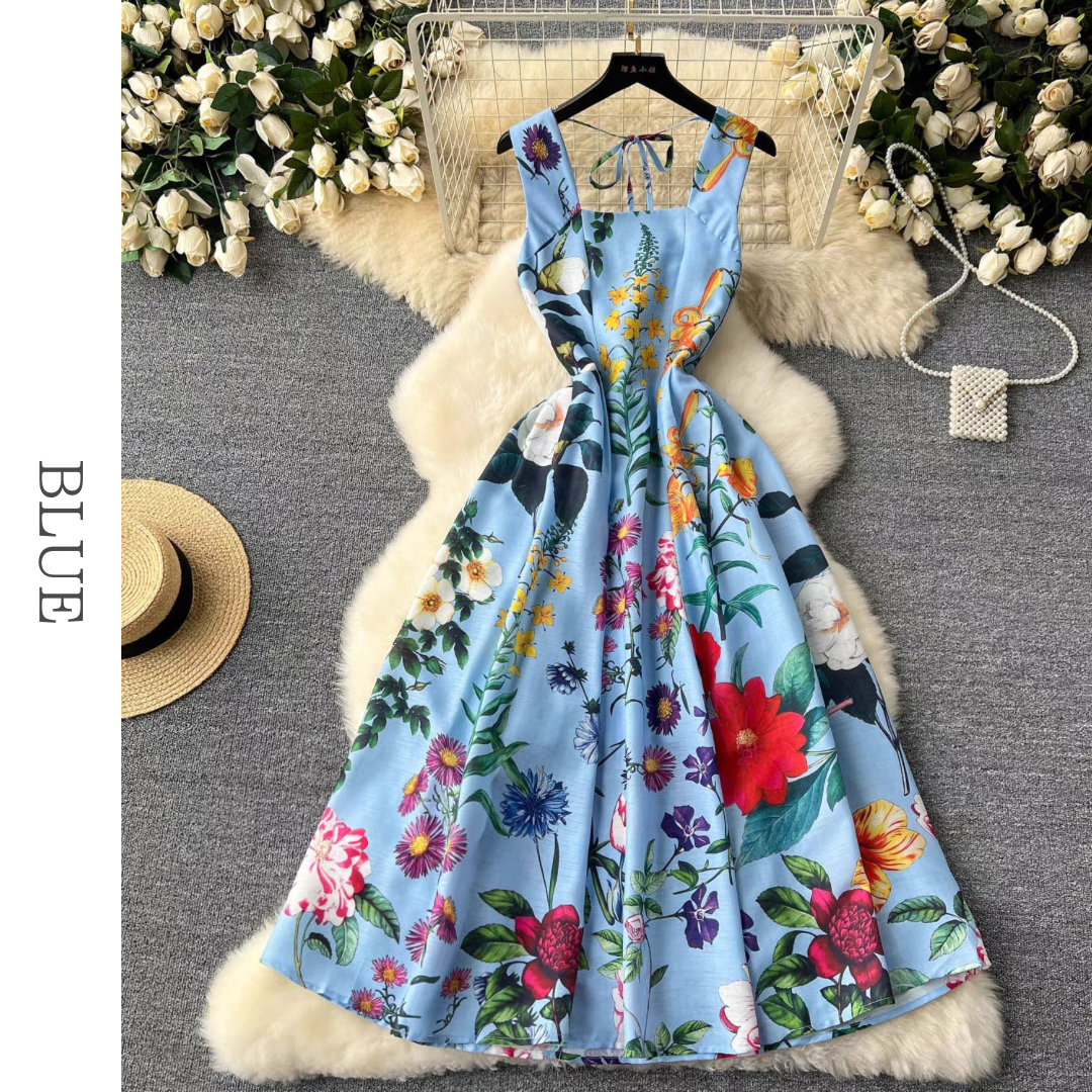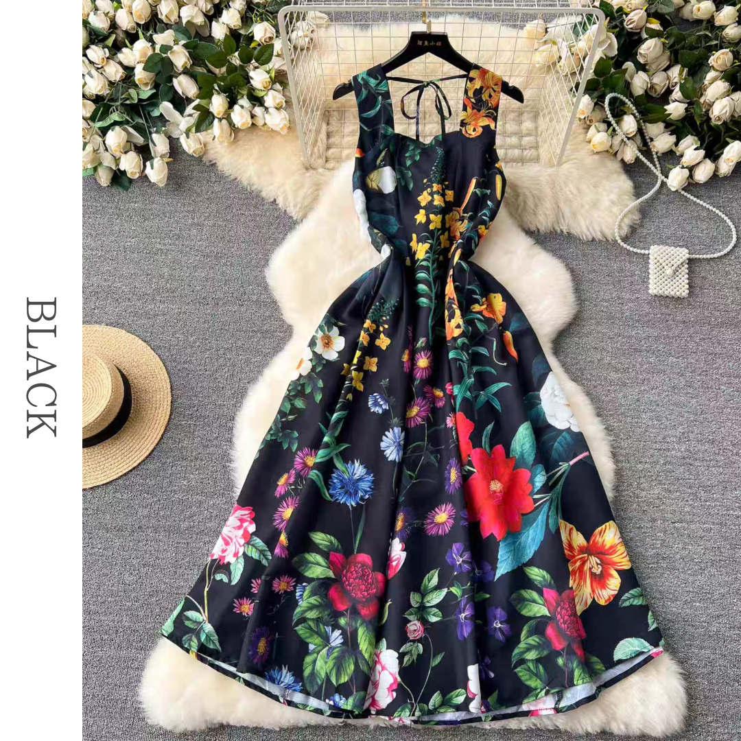 スクエアネックボタニカルフレアドレス 3色展開 D0249