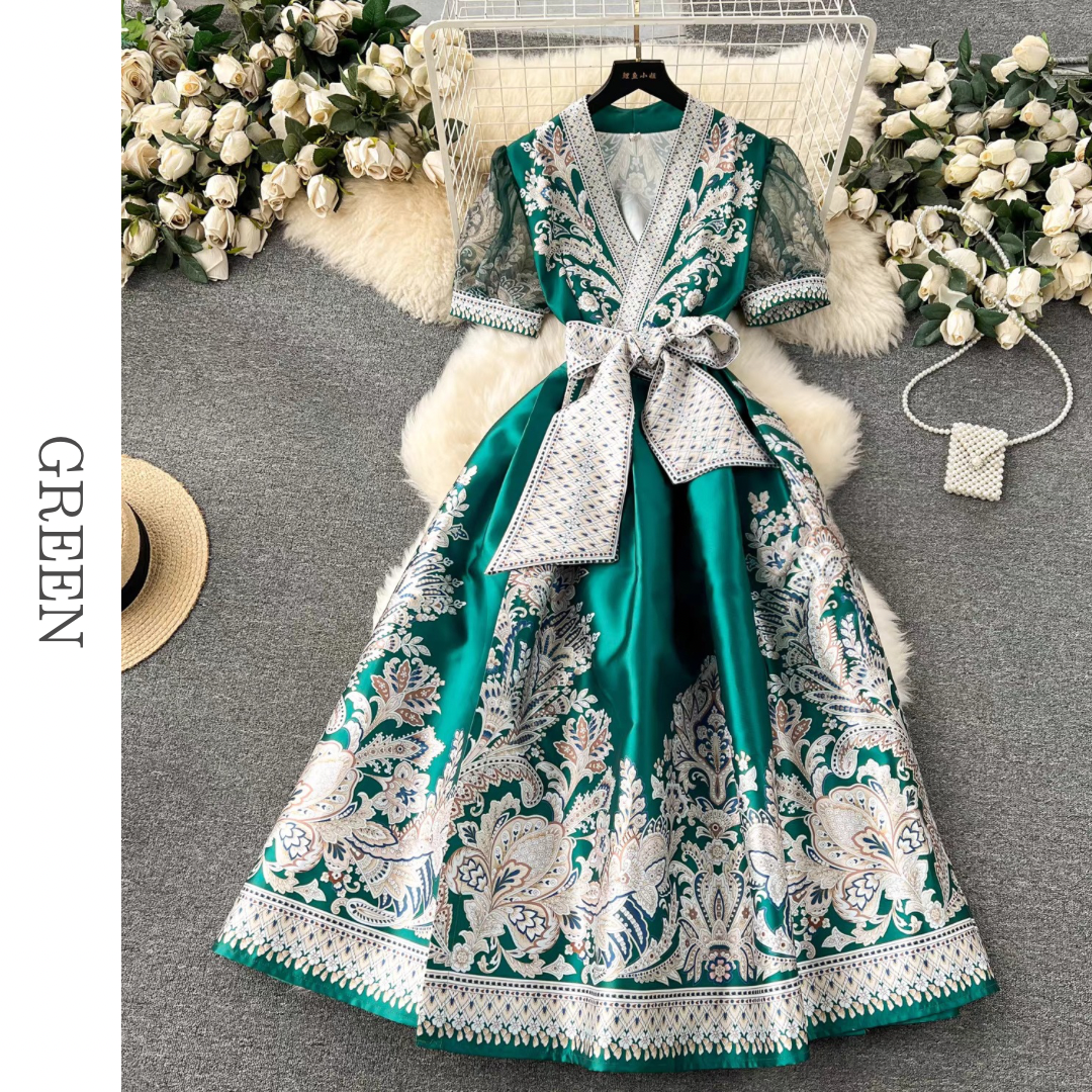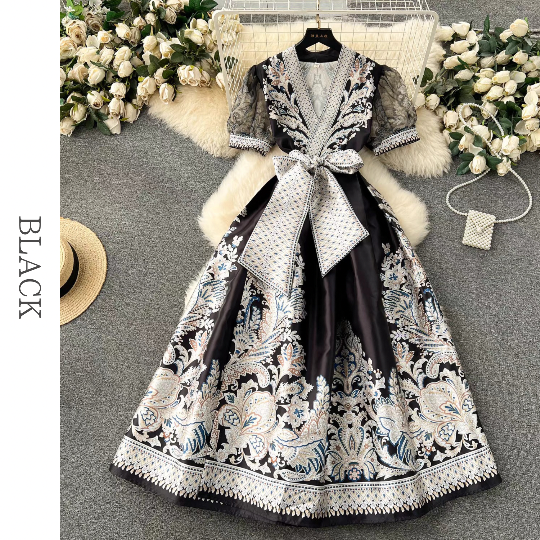 ペイズリーボリュームスリーブロングドレス 3色展開 D0252