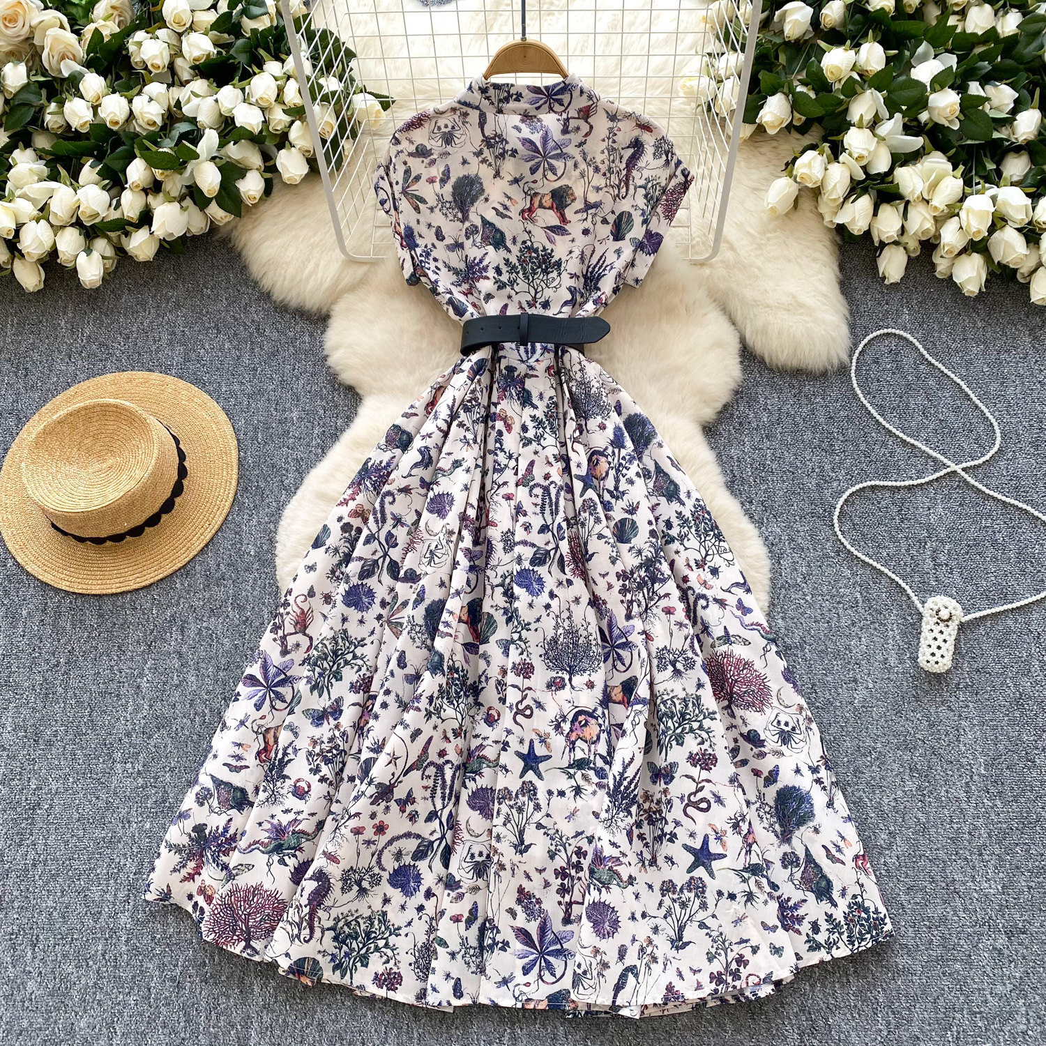 ボタニカルアニマルプリントシャツワンピース 2色展開 D0276