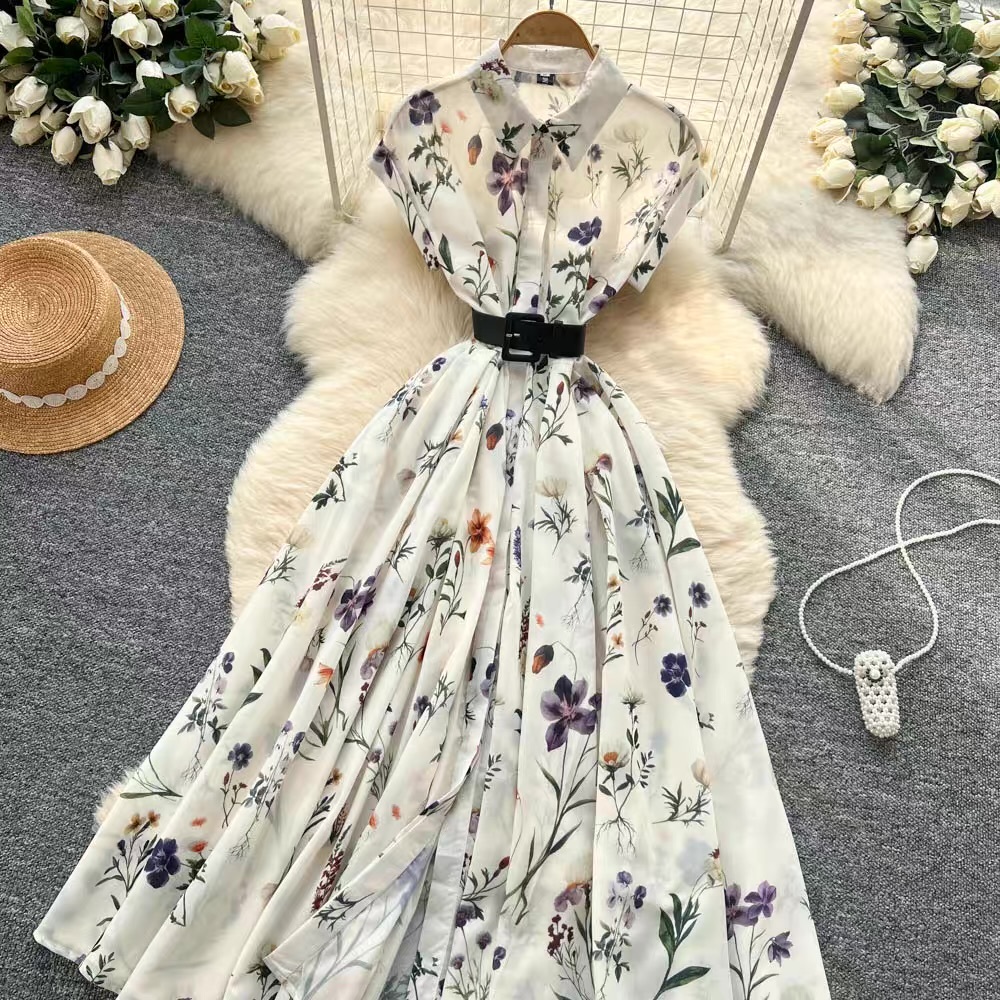 ボタニカルベルトフレアドレス D0293