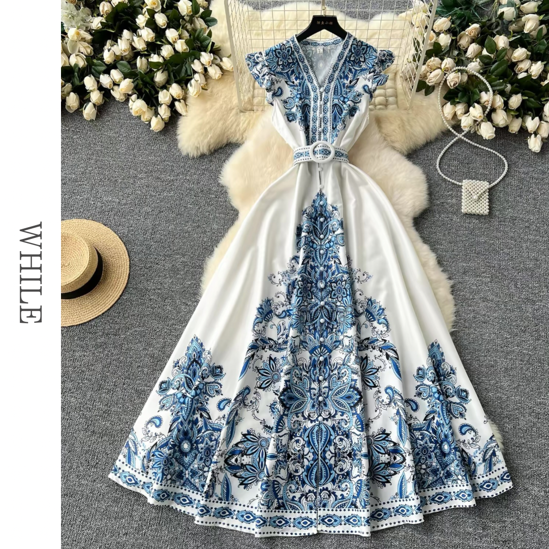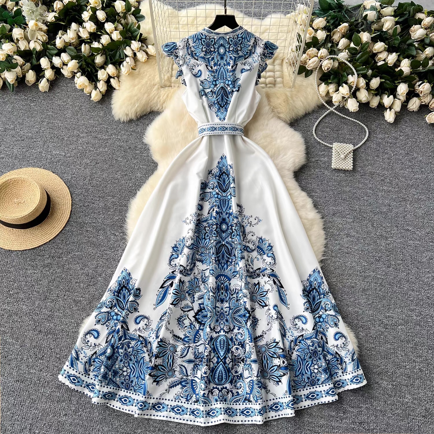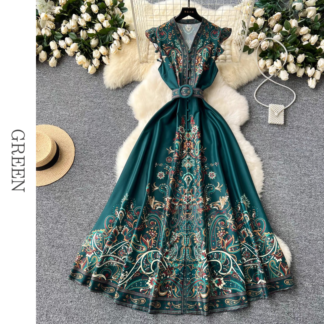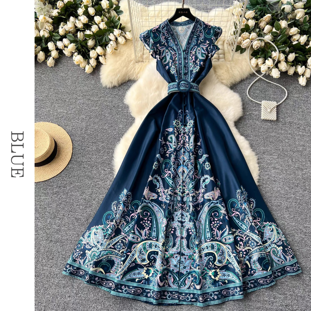 ペイズリーノースリーブワンピース 3色展開 D0301