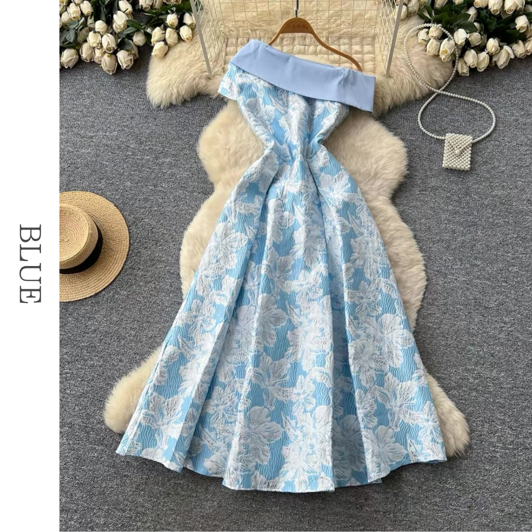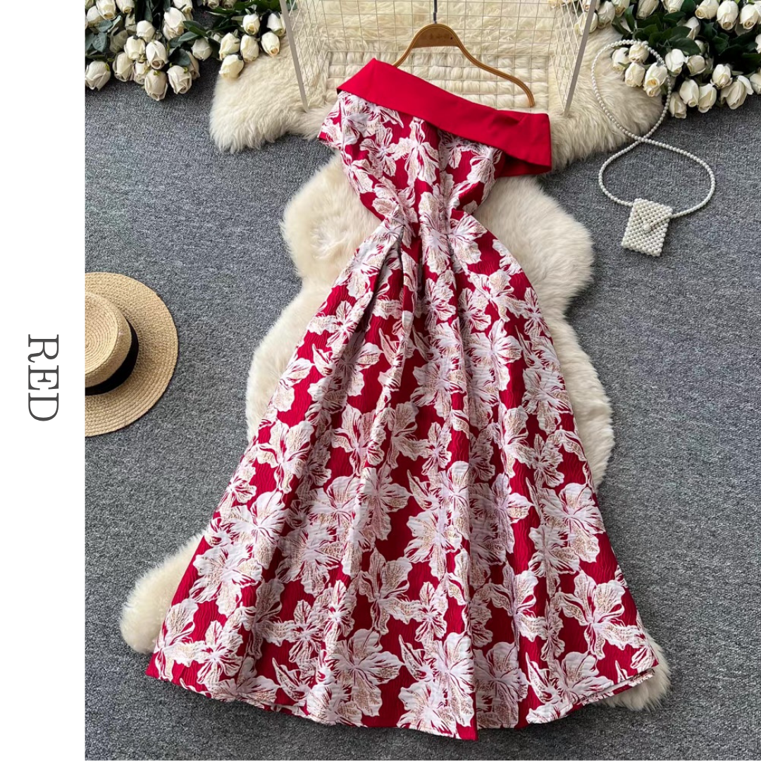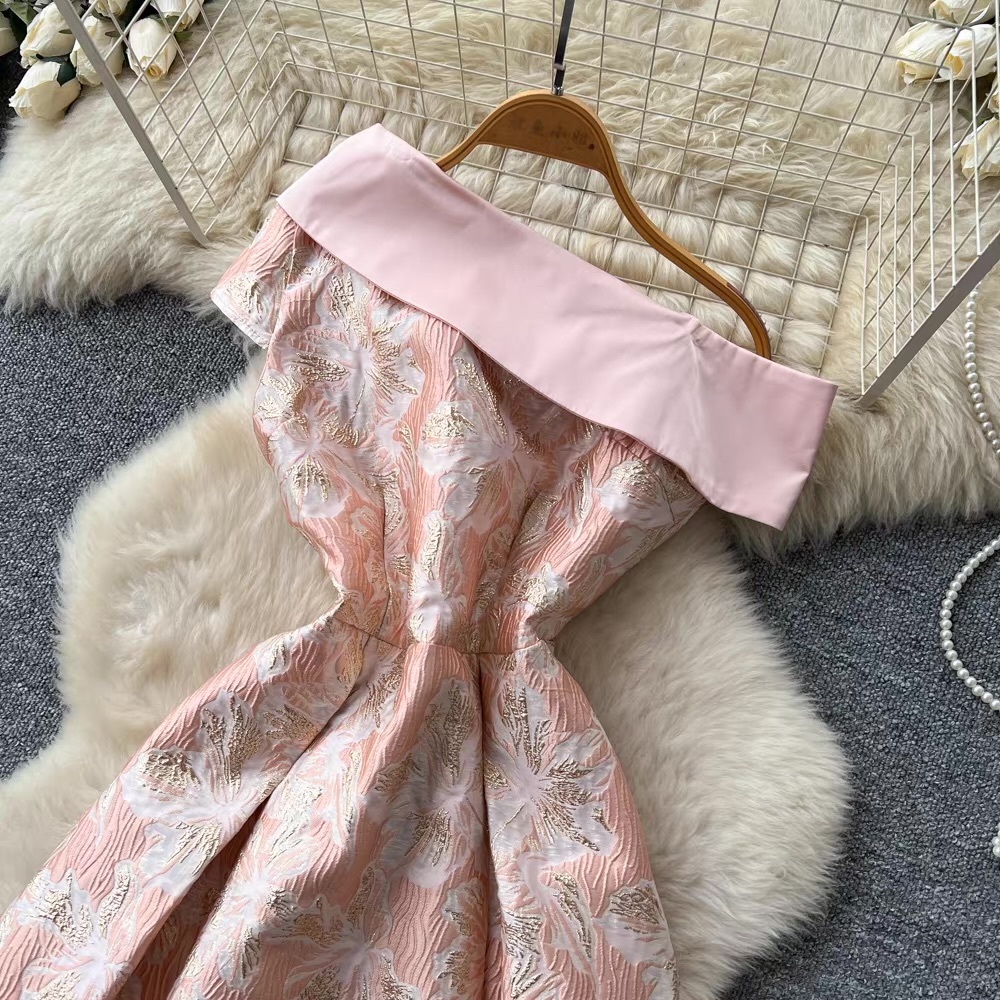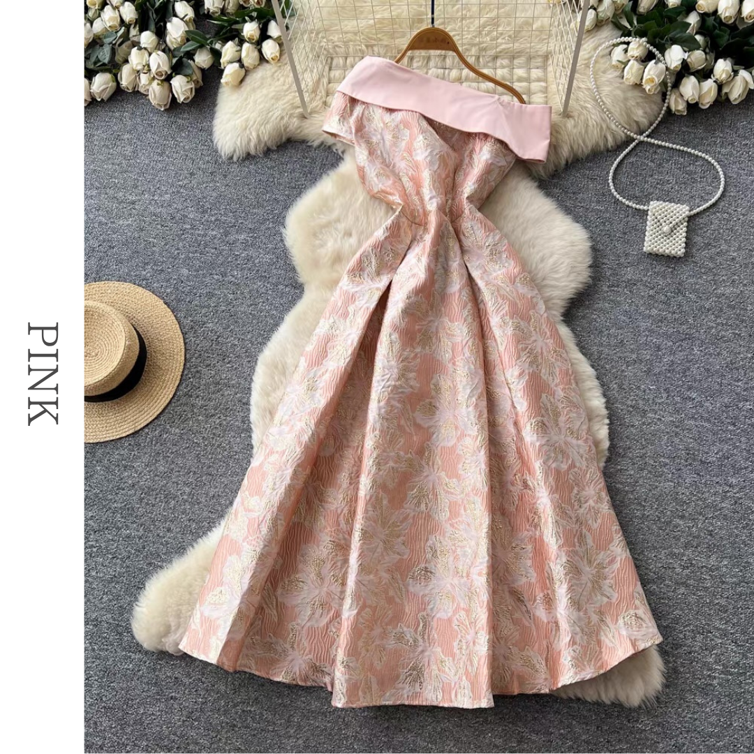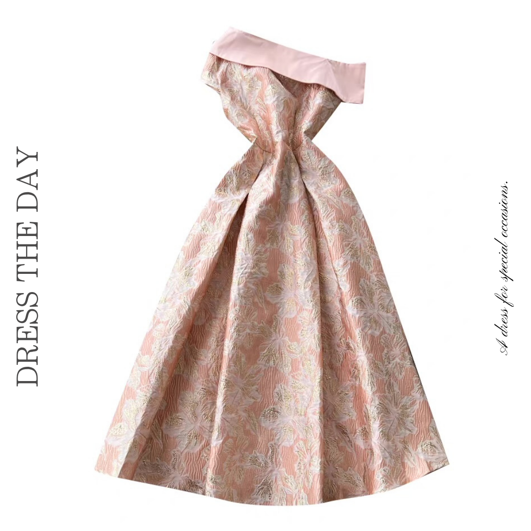 オフショルダーフローラルジャガードワンピース 3色展開 D0308